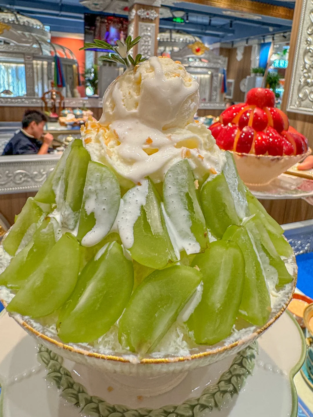 武汉!梦时代!快去吃!!! 蒙古!风味!餐厅!有、超前!🥹 点了一桌都吼吃!真的和图片一模一样! - 🧀内蒙古芝士奶酪饼 外皮酥软,奶香十足!一定要趁热吃,拉丝好长! 🫕蒙古锅茶 咸口的奶茶!用黄油把锅底炒香,有奶皮子+奶豆腐+牛肉干+炒米,再倒入奶茶,用料丰富吼喝! 🍥奶皮子卷 几种口味混搭的奶皮卷,里面加了干果夹心,口感绵密好丝滑,微甜不腻~ 🍧无花果雪冰 牛乳冰+新鲜无花果果肉+蜂巢,甜甜的吼吃!