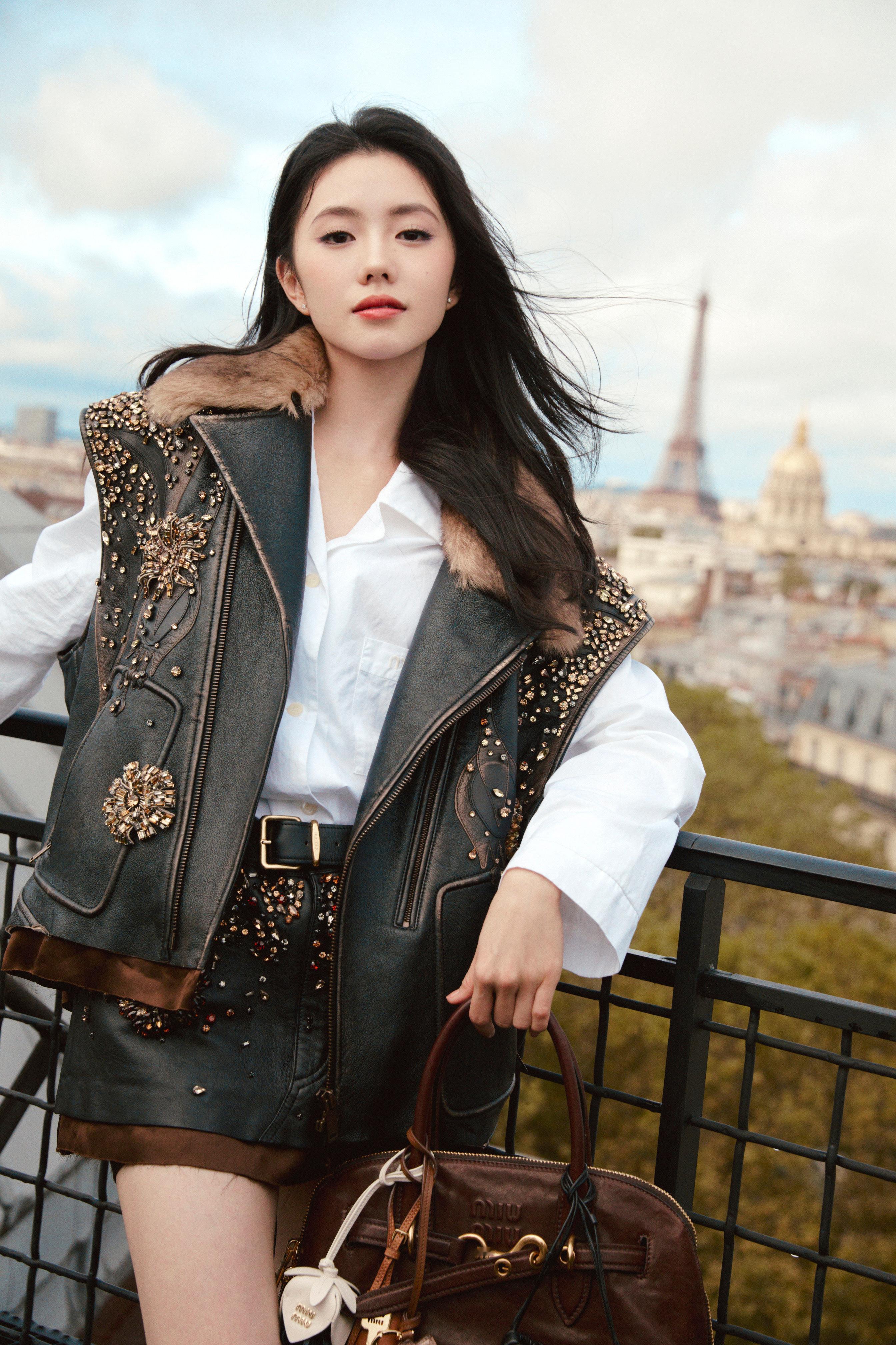 #刘浩存看秀状态好松弛##刘浩存看秀look#刘浩存现身巴黎 MiuMiu 时装周,她的时尚造型让人过目难忘。皮质套装搭配毛领钉珠无袖马甲,展现出她的时尚品味与气质。秋日的时尚在她身上绽放出独特的魅力,她以松弛的状态展现出自信与从容。期待刘浩存在时装周上的更多精彩表现。