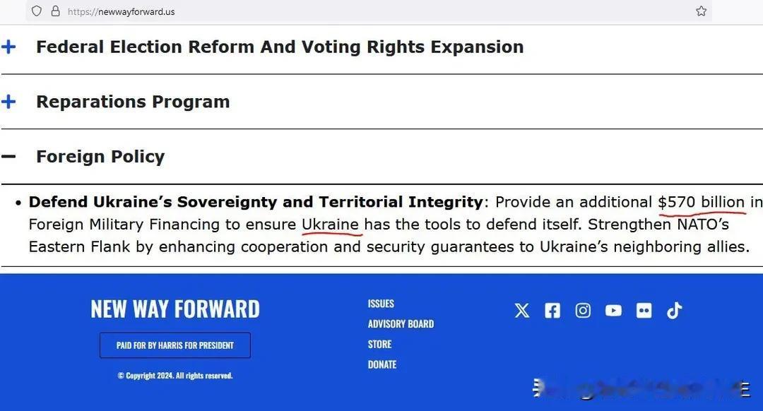 🇺🇸 哈里斯的竞选网站上出现了关于向乌克兰拨款的条目5700亿美元。 🇺?