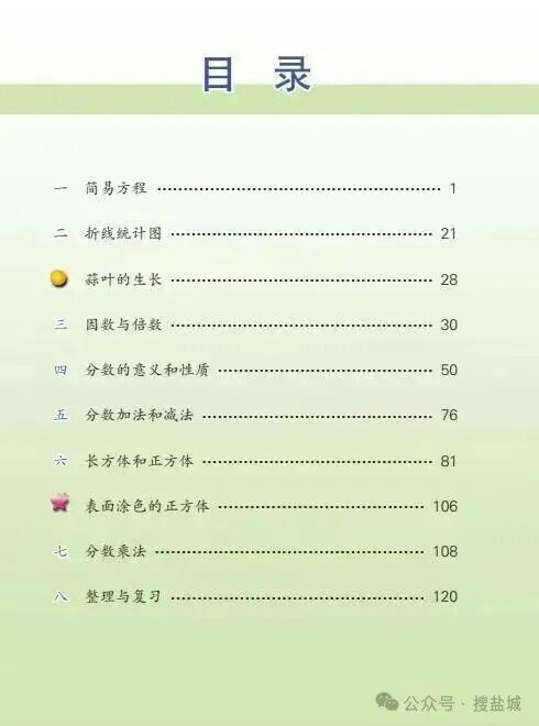 2026年春学期苏教版五年级下册数学教材的目录如下: