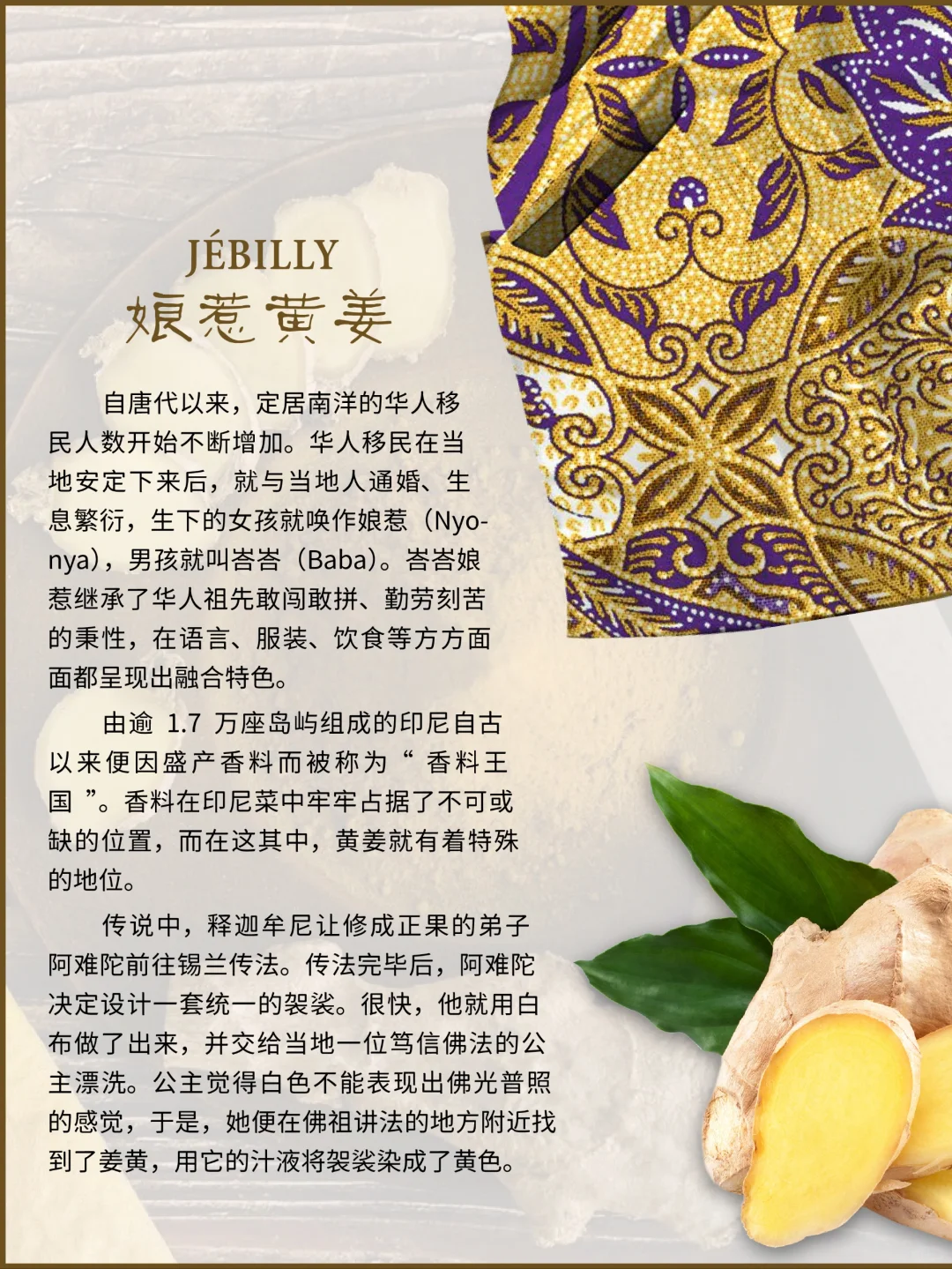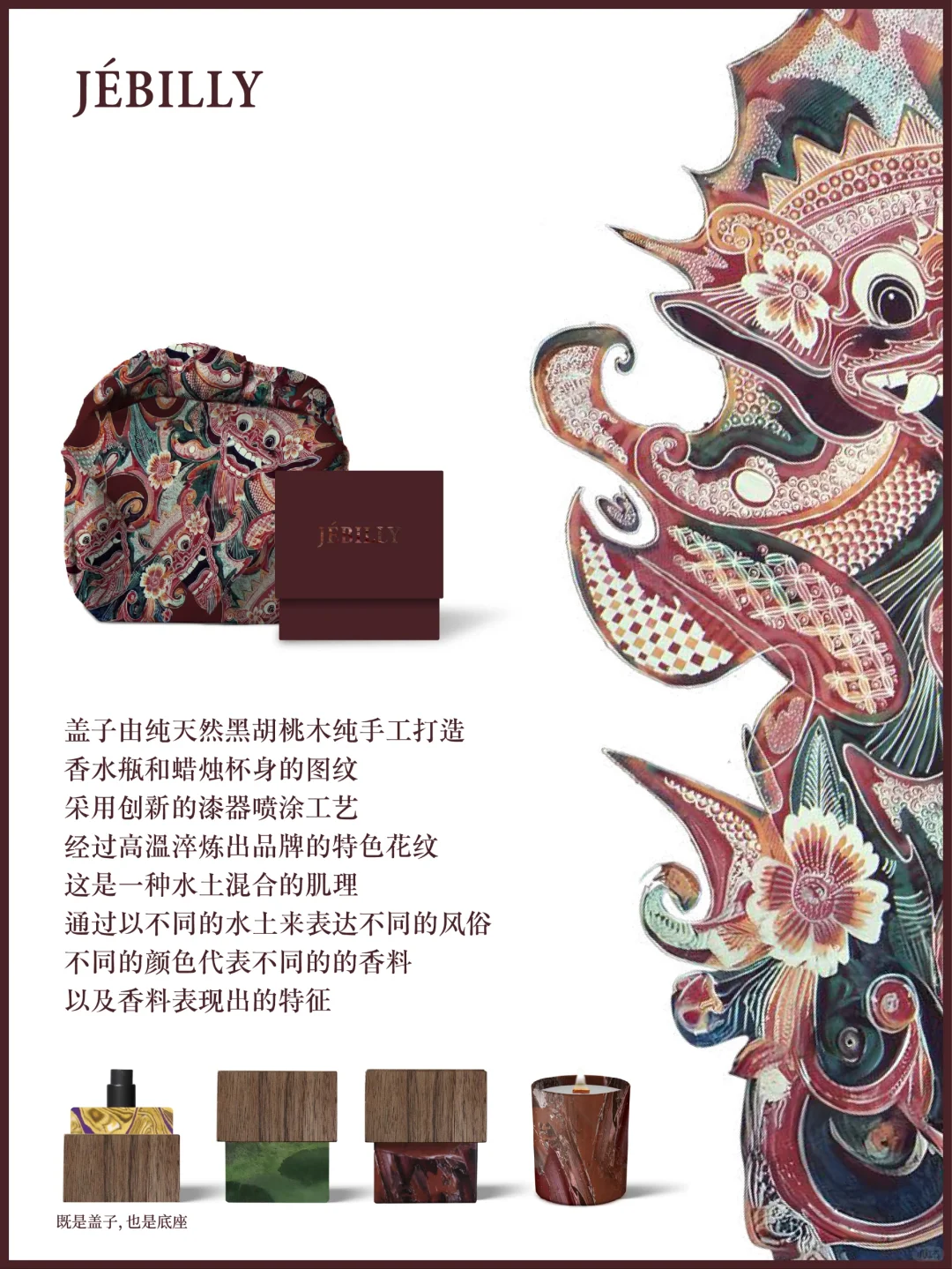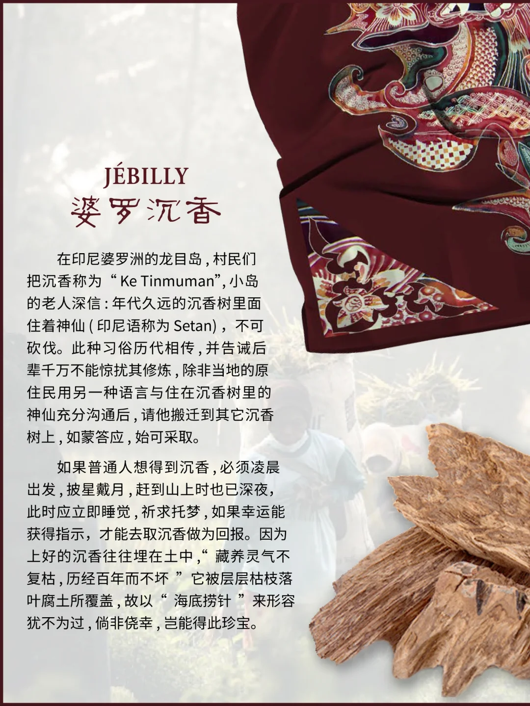 🌳🍋☘️ 2011年成立的 JEBILLY 香水品牌,名字源自于创始人Surah Tan先生外婆的姓氏Jebilly,以印尼的历史地理及香料文化特色,结合创始人在华的多年香水行业从事经验,推出了“婆罗沉香”、“娘惹黄姜”、“苏门答腊广藿”三款香水,后续也还会以印尼当地具有传奇色彩的故事继续推出更多香气,例如:戛丁街二号、天空之门、恶魔的眼泪。其中大量用到了印尼特*有的丁香、肉豆蔻、黑胡椒、茶、可可和咖啡、安息香、沉香、广藿、檀香。