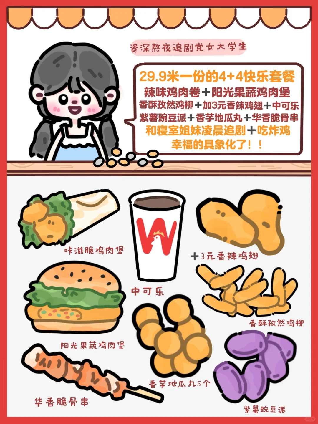 本柚子的工作💼家常昼夜颠倒,有时候要半夜🕛才能休息,这个时候肚子咕咕叫 来一份华莱士快乐套餐🎉当夜宵也超合适😋总之就是很适合我这种大馋丫头犒劳自己哈哈