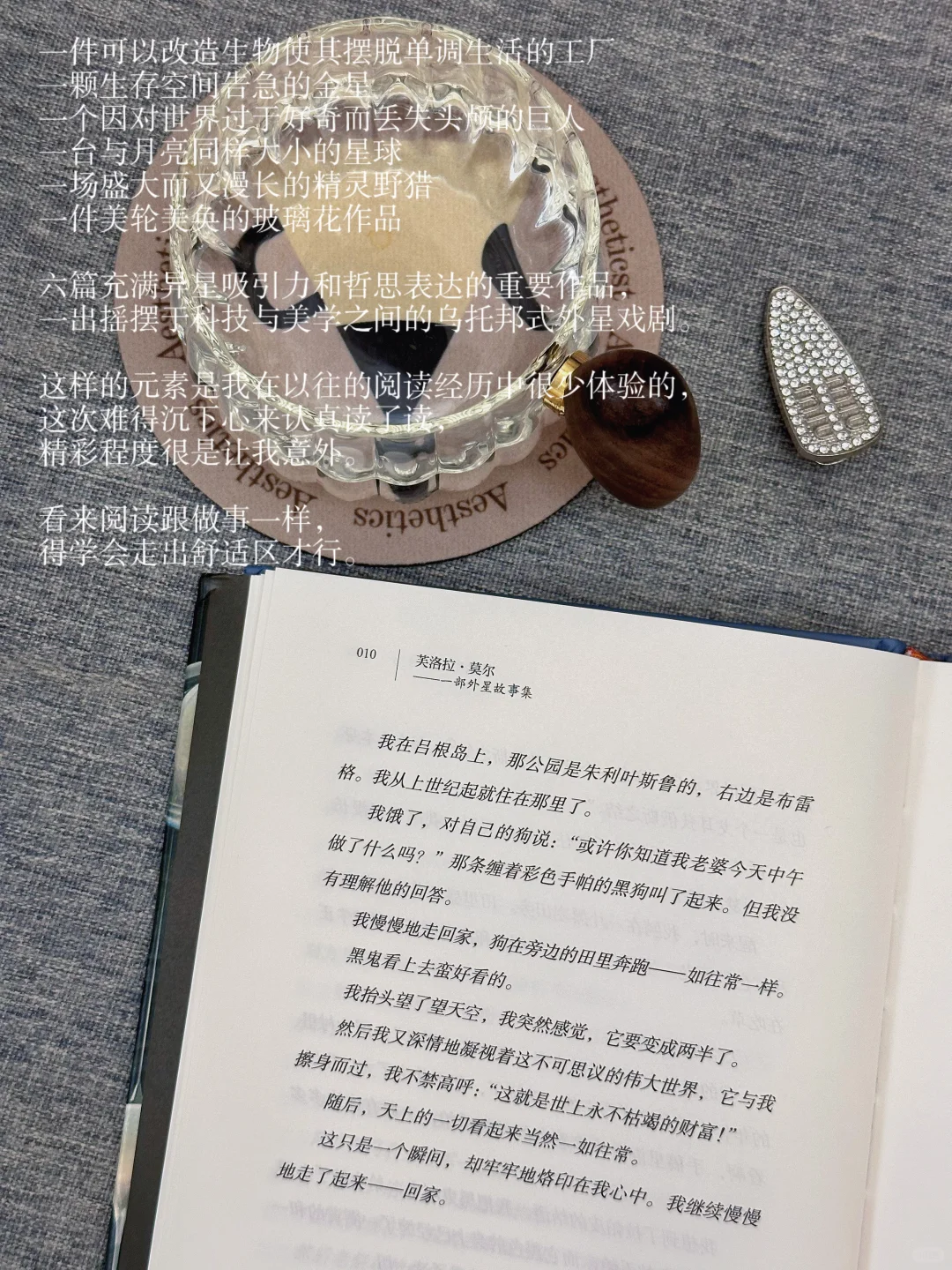 六篇充满异星吸引力和哲思表达的重要作品,一出摇摆于科技与美学之间的乌托邦式外星戏剧。这样的元素是我在以往的阅读经历中很少体验的,这次难得沉下心来认真读了读,精彩程度很是让我意外。看来阅读跟做事一样,得学会走出舒适区才行。