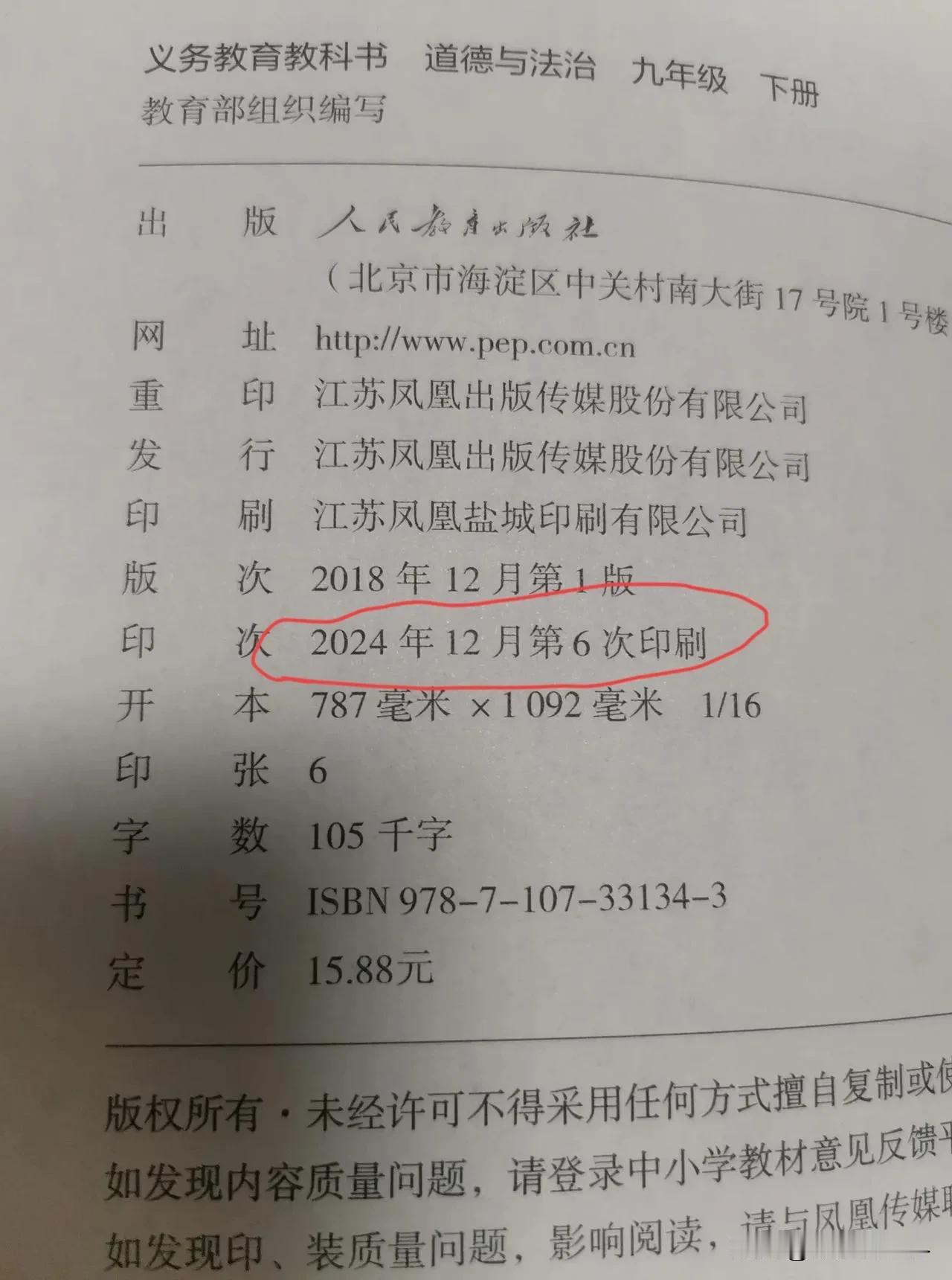 学校老手让准备九年下学期的道法教材,新华书店买不到,在书市买了一本早产的道法教材