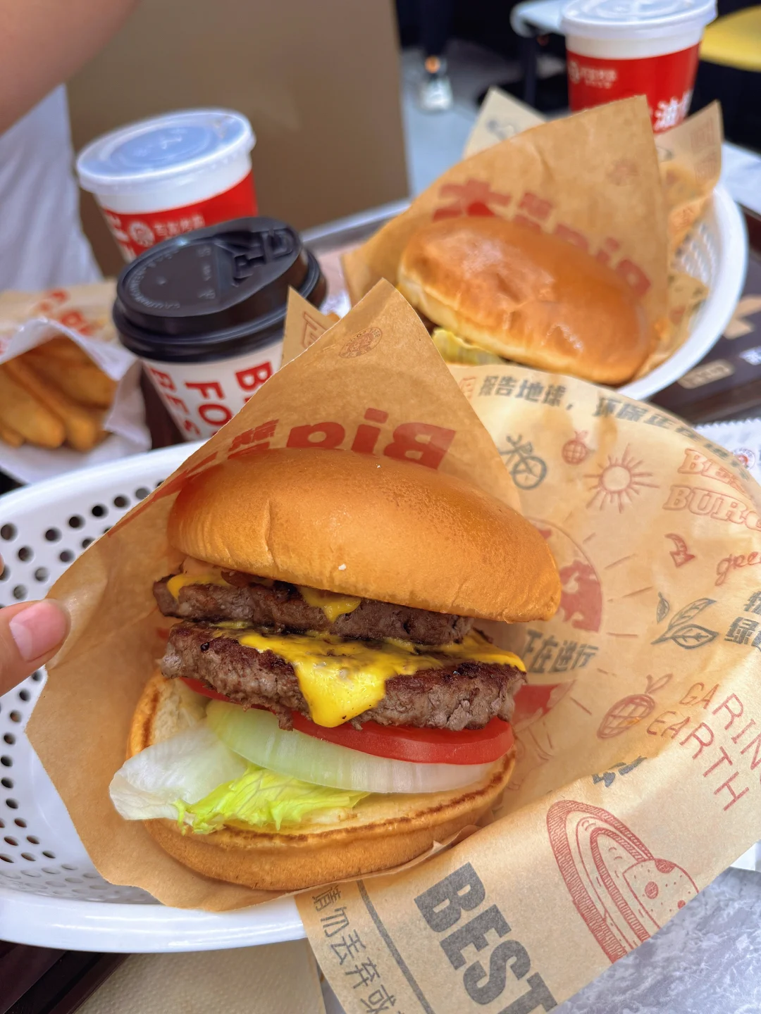 双层牛肉饼,厚实多汁,咬上一口,满口留香幸福感瞬间爆棚!果然还得起🍔~