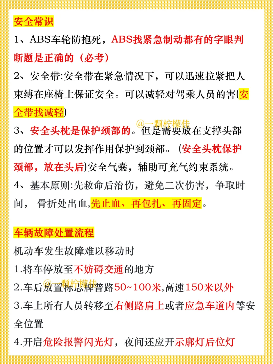 宝子们![萌萌哒R] 是不是觉得科一要记忆的知识点太多了,很多记忆力不好的宝子看到题目就脑壳疼😭 - 其实考试都是有方法的,学会答题技巧才知道原来这么简单~~~[赞R][赞R][赞R] 例如扣分罚款题,只要把关键词记下来,再做下专项训练,就没啥大问题。💯 - 科目一很多知识就是常识,只有一些是需要背熟的,实在不想背的可以去看看xiao🌸xiao🌸科目一视频,很好懂👋🏻,比文字生动~好记~~~✍🏻 - 祝宝子们科目一都一把过哦~~~💞
