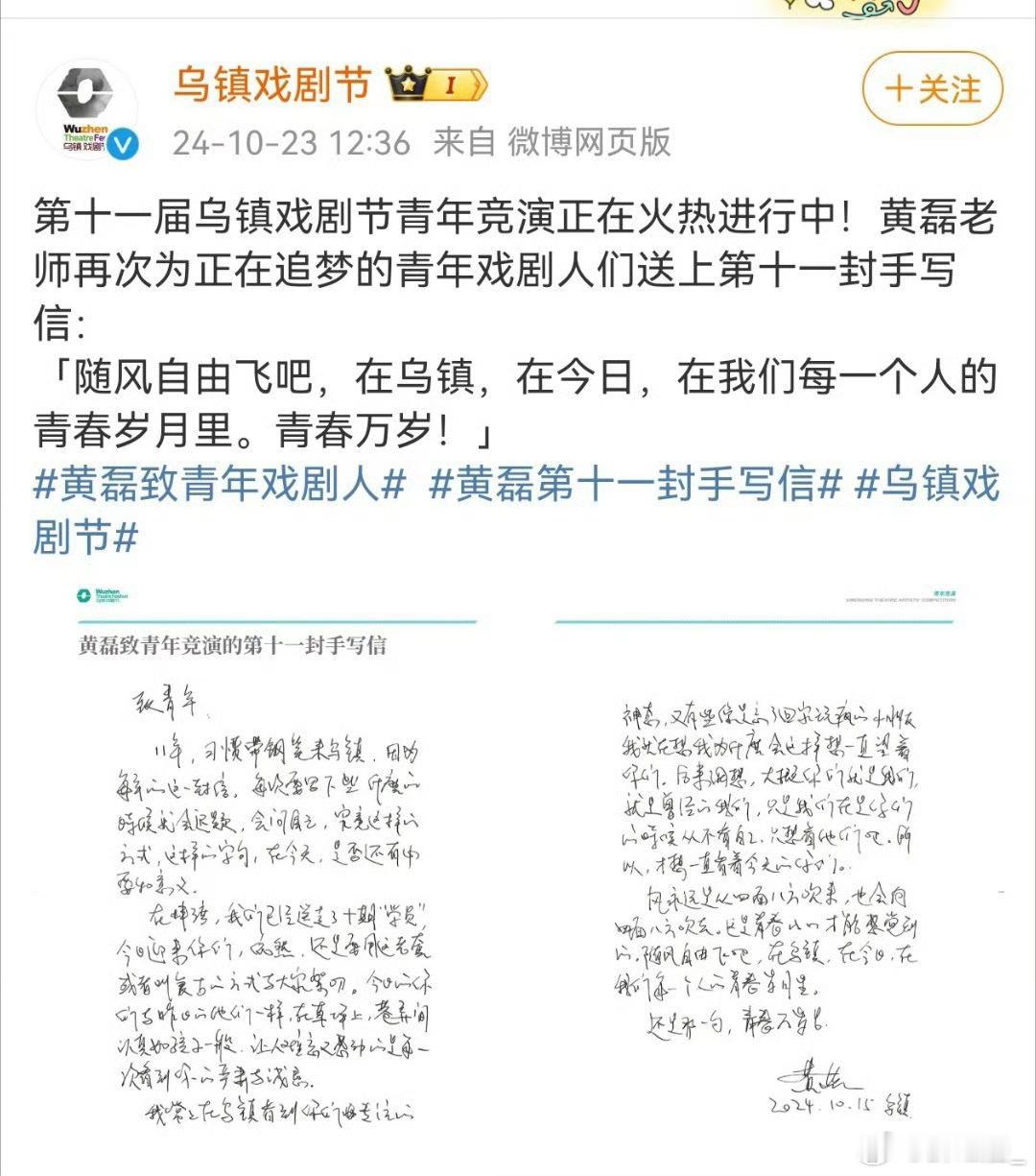#黄磊手写信 真诚#黄磊老师的这封手写信📝,不仅是对青年戏剧人的一次鼓励,更是对整个戏剧界的一次呼唤。它让我们看到了老一辈艺术家对新生代戏剧📺人的殷切期望和无私奉献,也让我们更加坚定了对戏剧艺术的热爱和追求。#黄磊手写信真诚#