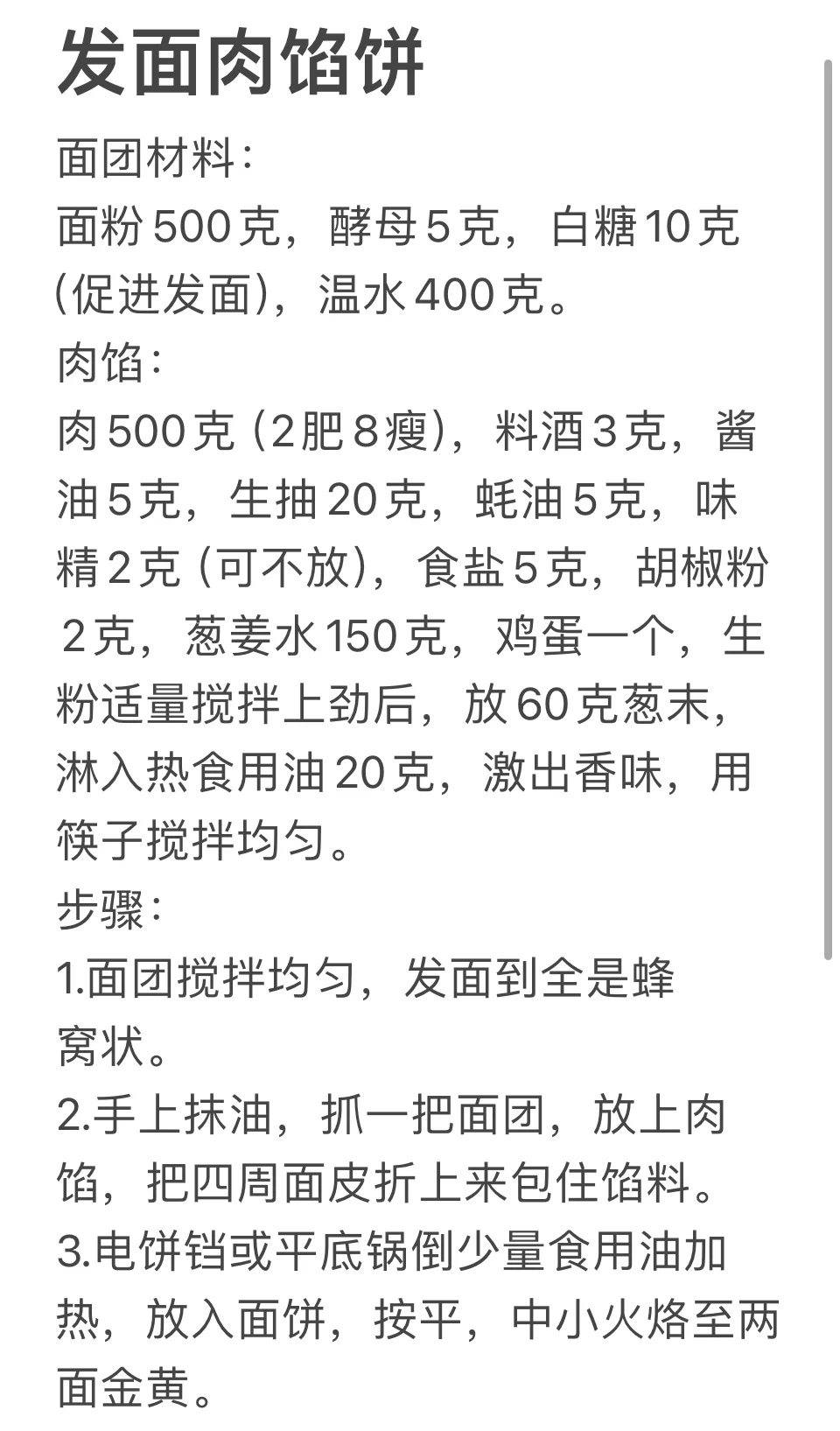 这个方法做的肉馅饼特别柔软蓬松,馅料鲜美多汁,晚上和面,发好再放冰箱,调好馅,放冰箱早上烙饼,方便快捷。