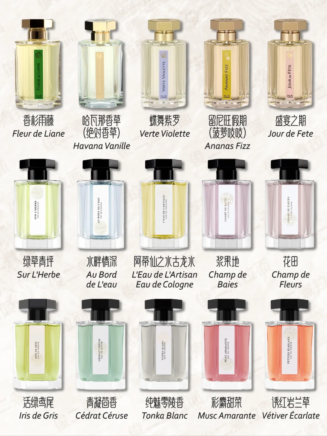 🇫🇷阿蒂仙之香(L'Artisan Parfumeur)是法国稿端小众*香水品牌,由创始人让·拉珀特(Jean Laporte)成立于1976年,总店位于优美的巴黎塞纳河右畔。品牌强调以传统的手法、使用草本原料来制造香水,分别装在有着典雅精致的金色瓶盖和款式简单俐落的瓶身中,仅以瓶身上不同颜色的卷标来细分味道。