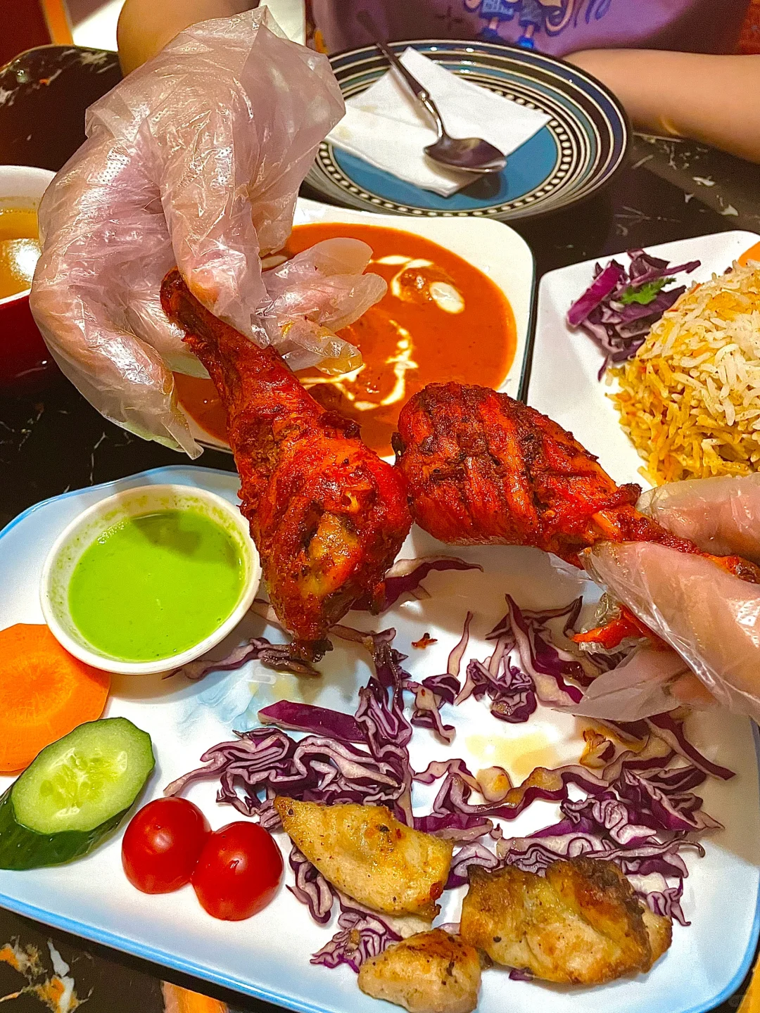 巴基斯坦的美食,果然味道很独特。 店里们老板和员工都是巴基斯坦人,特别有礼貌,服务也很好,临走前还会用中文说拜拜 🫕喜欢吃咖喱的有福啦,他们家的咖喱是红咖喱里面有鸡肉味道不错,我是把咖喱和米饭一起拌着吃的。他们的大米都是属于长米比较松散。 🍗鸡腿一定要趁热吃,现烤的味道都挺不错的! 店也比较好找,就在青年路上很醒目的招牌“藏红花”