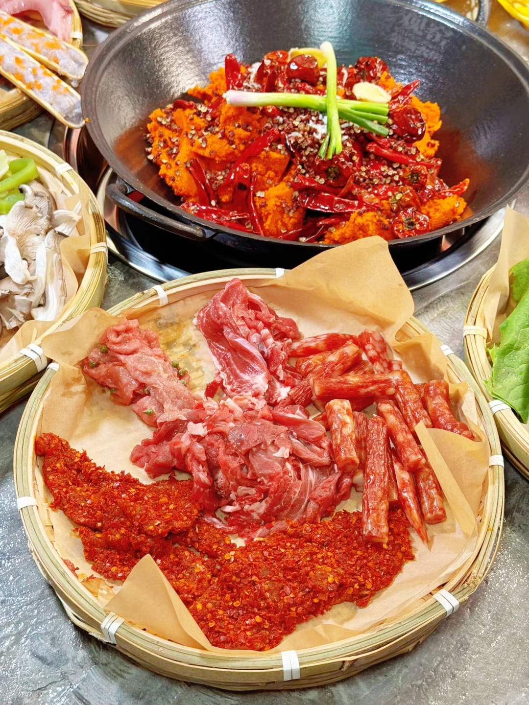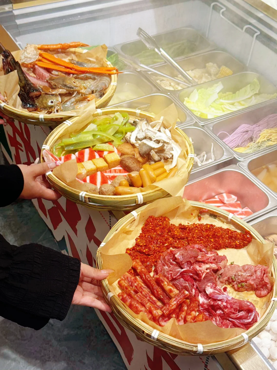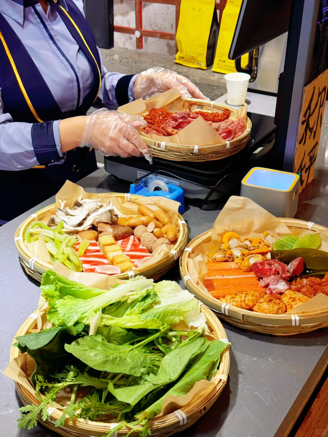 挑的满意的那必须是挑一簸箕满满的海鲜呀,种类多到数都数不过来。菜品称重计费简直太贴心啦,想吃什么就拿什么,想拿多少就拿多少。😜牛肉必须狠狠夸一夸,现切的哟,新鲜得不得了。吃起来美味无比,关键还不长肉,放心大胆地多称点,煮在火锅里,那滋味,绝绝子。😋