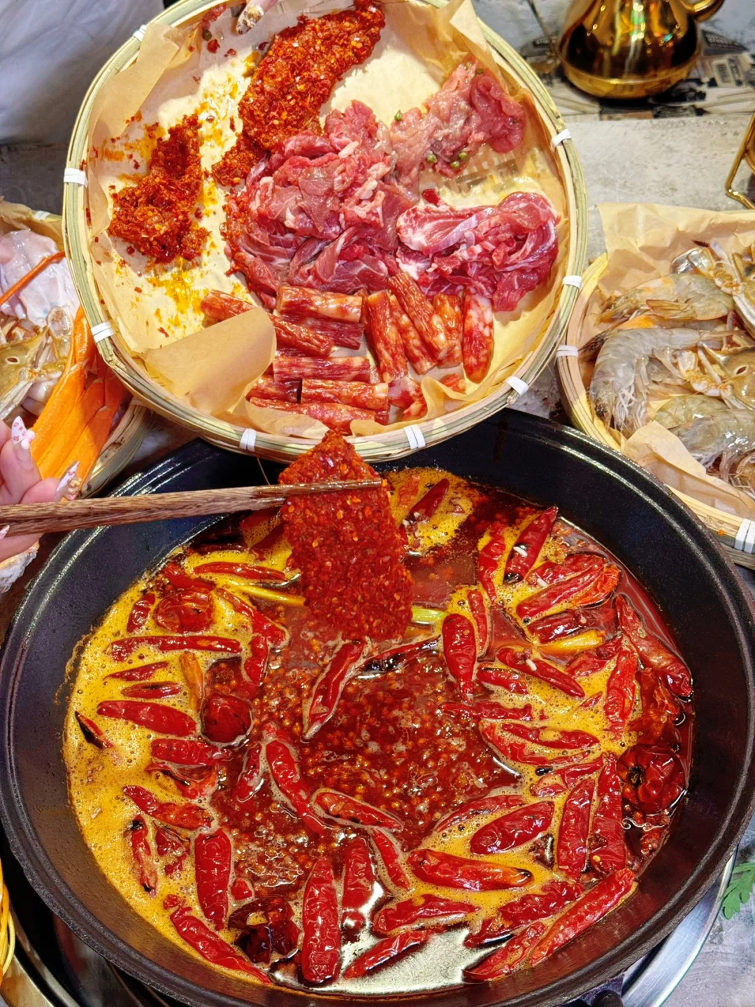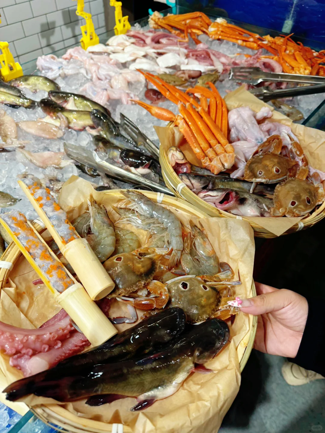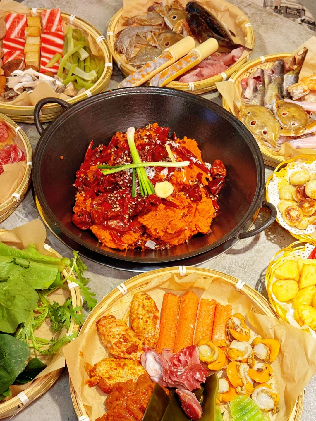 挑的满意的那必须是挑一簸箕满满的海鲜呀,种类多到数都数不过来。菜品称重计费简直太贴心啦,想吃什么就拿什么,想拿多少就拿多少。😜牛肉必须狠狠夸一夸,现切的哟,新鲜得不得了。吃起来美味无比,关键还不长肉,放心大胆地多称点,煮在火锅里,那滋味,绝绝子。😋