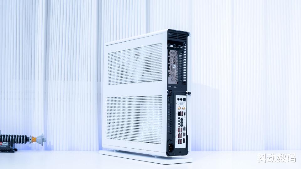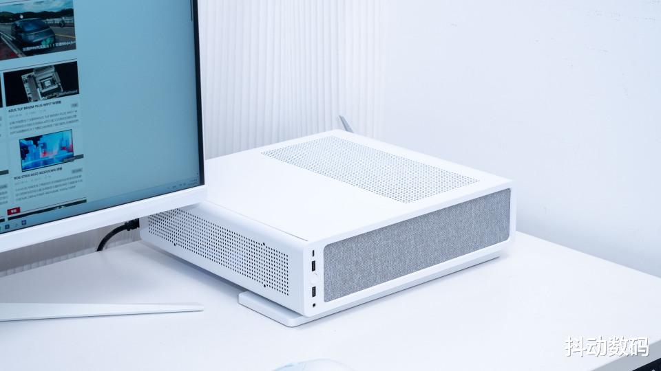搭配支架可以实现竖立以及侧卧两种摆放方式,适合作为客厅 HTPC 使用。