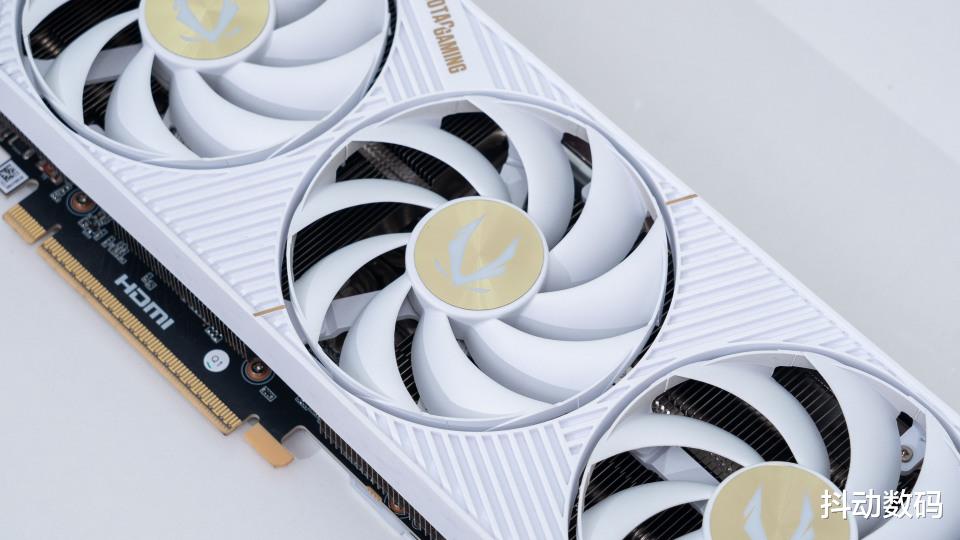 白色的索泰 GEFORCE RTX 5070 Ti SOLID CORE WHITE 显卡采用三风扇设计,30.5*4.3*11.7cm的三围尺寸,拥有不错的装机兼容性。双槽厚度的索泰RTX 5070 Ti SOLID可以说是目前一个很好的选择,对于ITX机箱玩家非常友好。