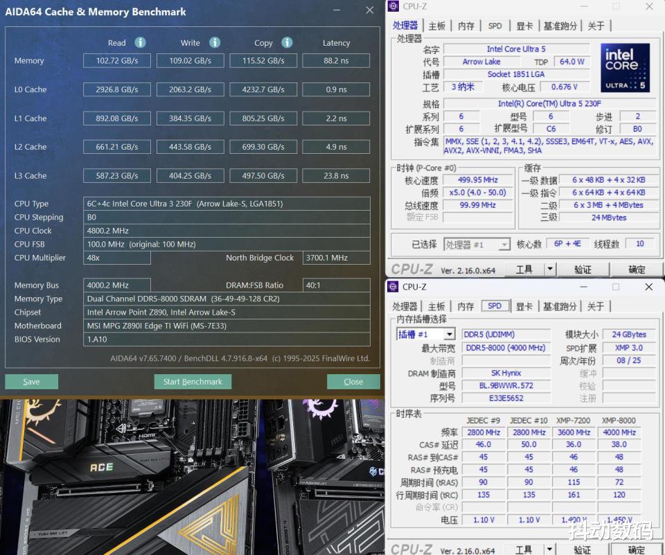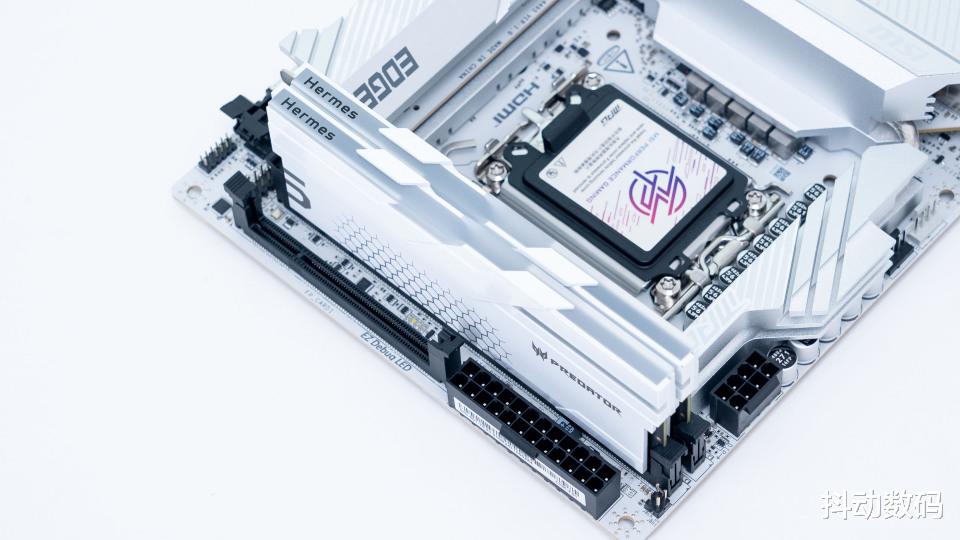 银白色的微星Z890i 刀锋钛主板搭配白色的宏碁掠夺者 Hermes 冰刃内存整体的颜值还是非常不错的。