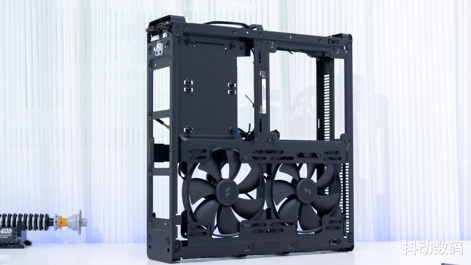 机箱上下层结构,上层还预装了两把风扇可以帮助显卡散热当然拆掉之后你会获得更大的安装空间。预装的两把14cm风扇也可以更好地为双槽设计的RTX 5070Ti SOLID显卡提供额外的散热支持。