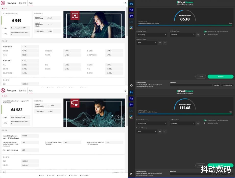 Procyon与Puget Systems的视频与图片生产力测试成绩参考。