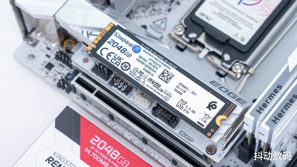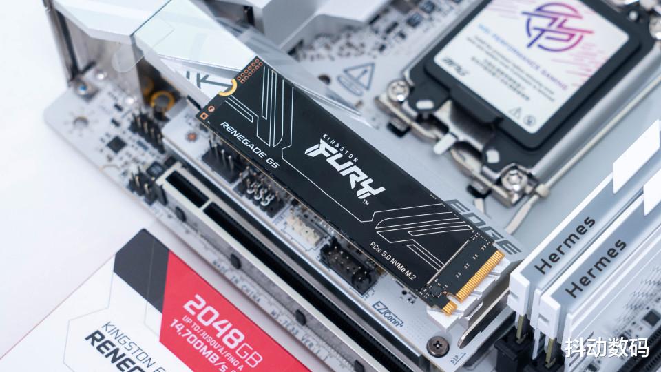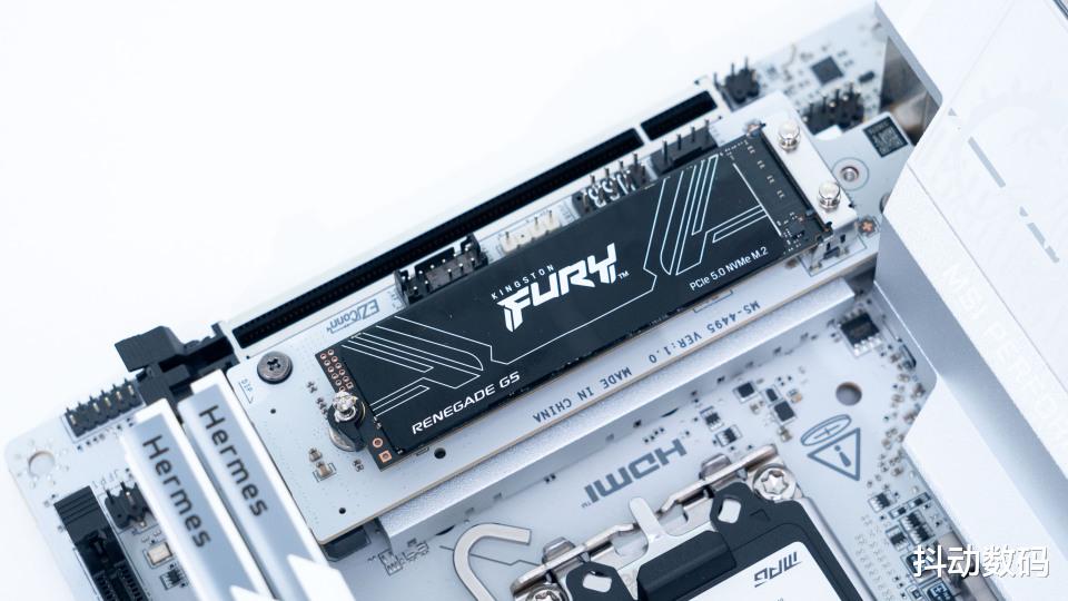 安装效果,搭配微星Z890i 刀锋钛主板安装在正面的PCIe 5.0 M.2 SSD接口位置。
