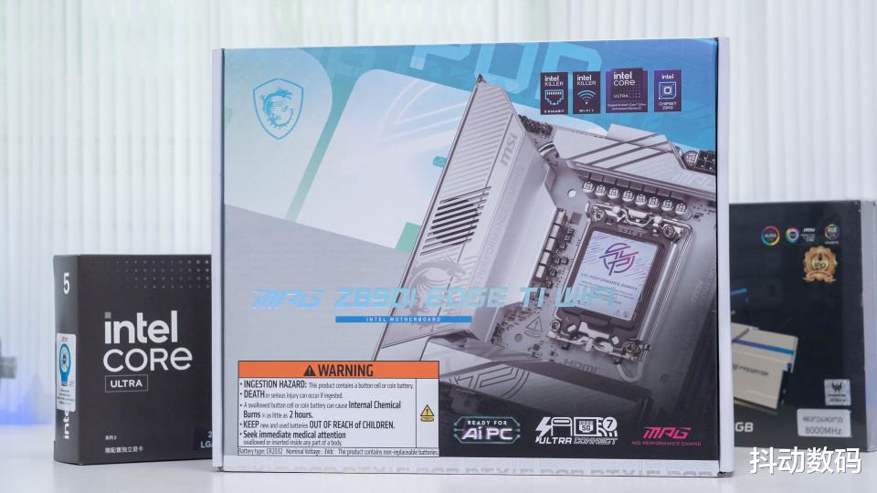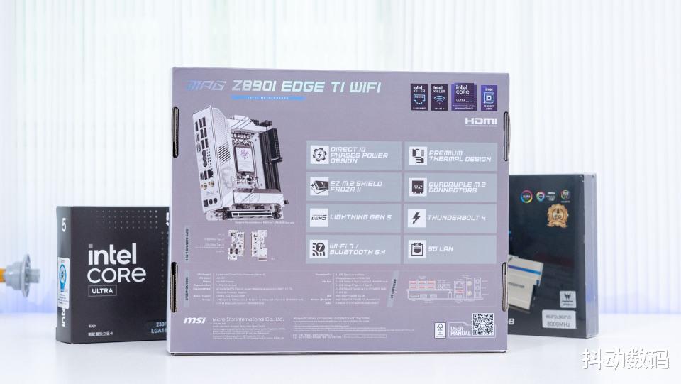 微星这款Z890i 刀锋钛主板采用了新的包装配色,包装上标注了这款主板采用了intel KILLER 5G有线网卡和KILLER WiFi 7 无线网卡,雷电4接口等主要卖点。