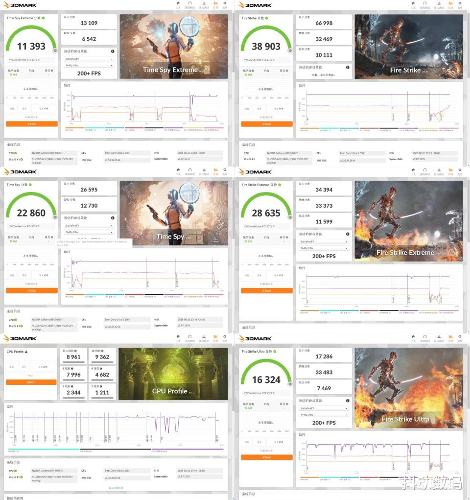 Time Spy Extreme 分数 11393,CPU 分数6542,GPU分数13109;