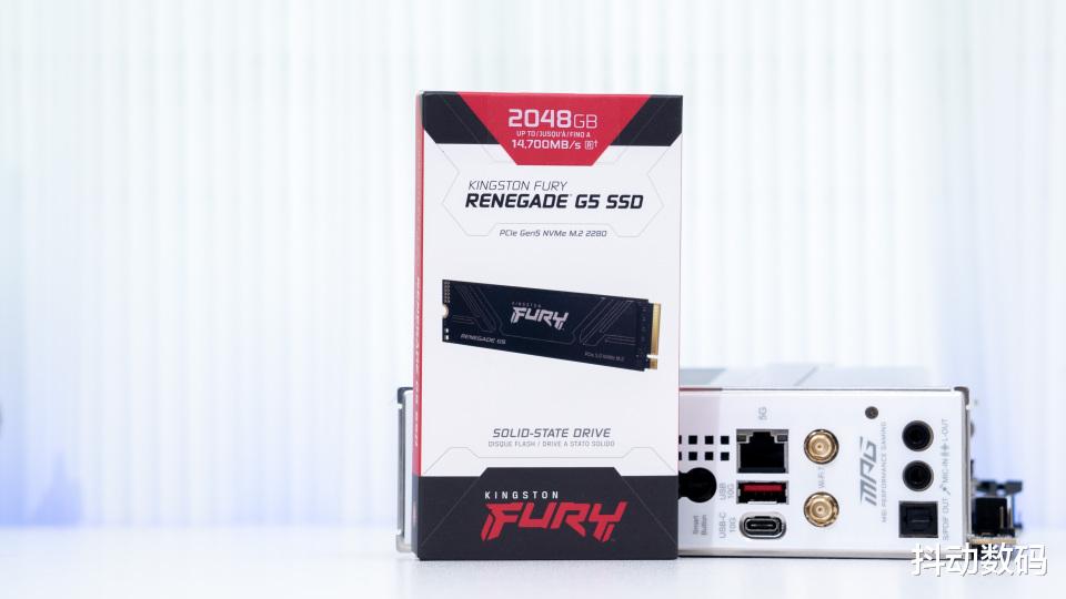 SSD方面选择了金士顿最近推出的FURY Renegade G5 PCIe 5.0 SSD产品,属于金士顿的FURY系列。我的是2TB容量版本,最高读取可达14700MB/s。也是目前市面上旗舰之选了,包装盒很小巧。正面可以看到产品容量与外观渲染图。