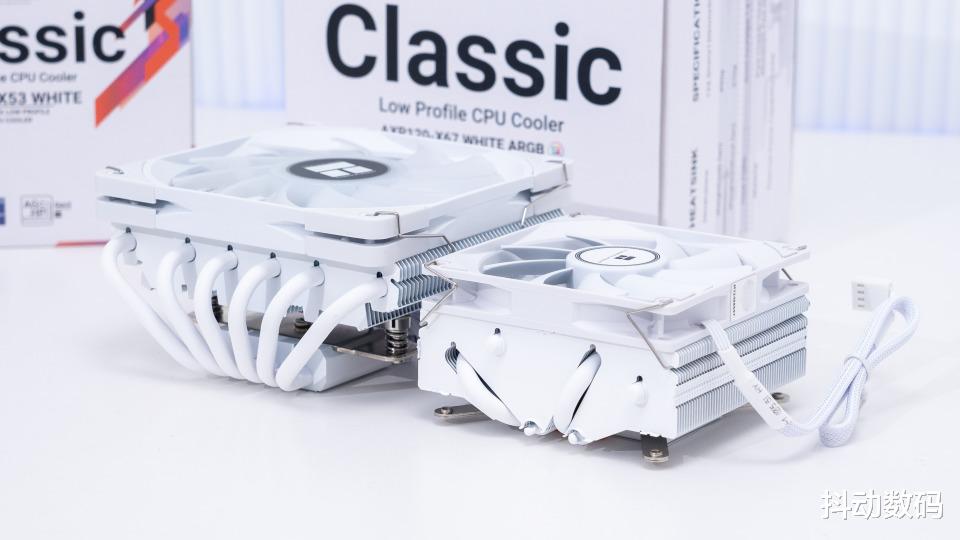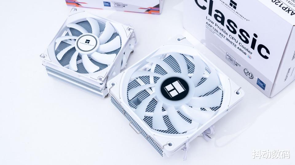 散热器搭配了两款,这两款都可以兼顾Fractal Design Ridge机箱风冷安装高度的需求。我选择两款利民AXP120-X67 WHITE ARGB 67mm/AXP90-X53 WHITE散热器,一款67mm高度的X67一款53mm高度的AXP90-X53。