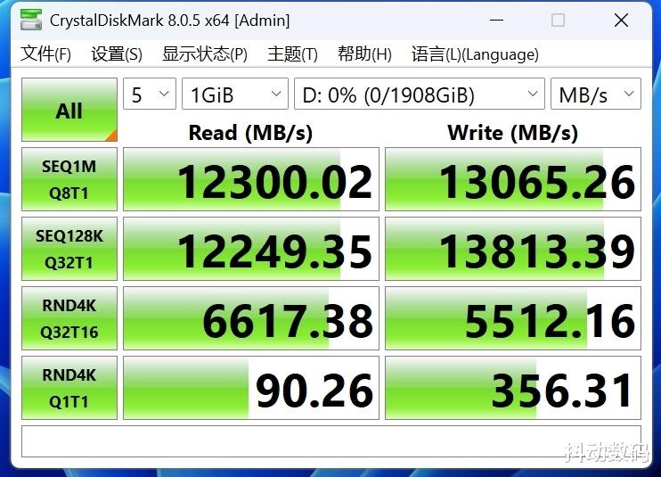 在intel Ultra平台上PCIe 5.0 SSD的读写成绩并不理想,实测金士顿 FURY PCIe 5.0 2TB SSD读写成绩如图。
