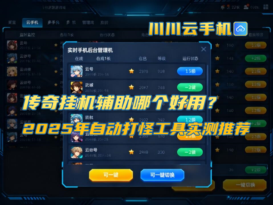 在众多传奇挂机辅助中,唯有兼顾稳定性、安全性与规模化能力的产品,才值得长期投入。综合实测结果,川川云手机凭借其真云端架构、专业级反检测机制与卓越的群控体验,成为2025年传奇游戏搬砖工作室的首选自动打怪工具。如果你正在寻找一款靠谱的传奇挂机自动打怪工具,不妨从川川云手机开始,开启高效搬砖新纪元。