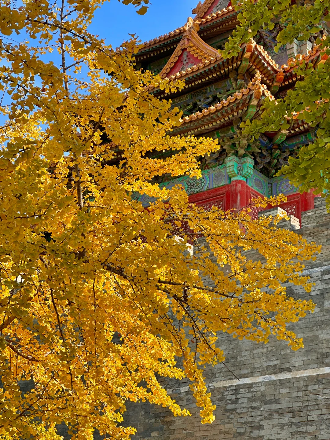 [拔草R]故宫角楼:西华门银杏角楼银杏已经巅峰绽放