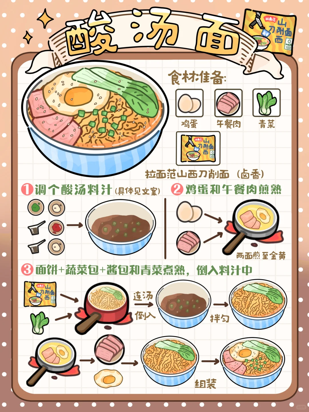 面饼可煮可泡,适合每一位节约时间⌛️的厨房小白 学生党 打工人👍任何人五分钟都可以掌握一碗美味🤤刀削面