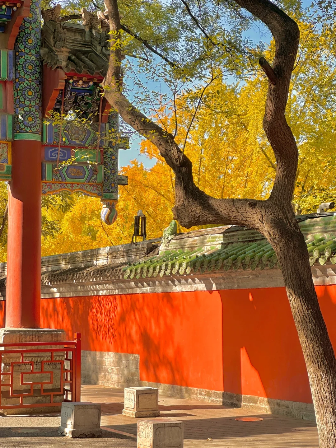 绝美小众红墙配孔庙和国子监里的银杏也开始变黄