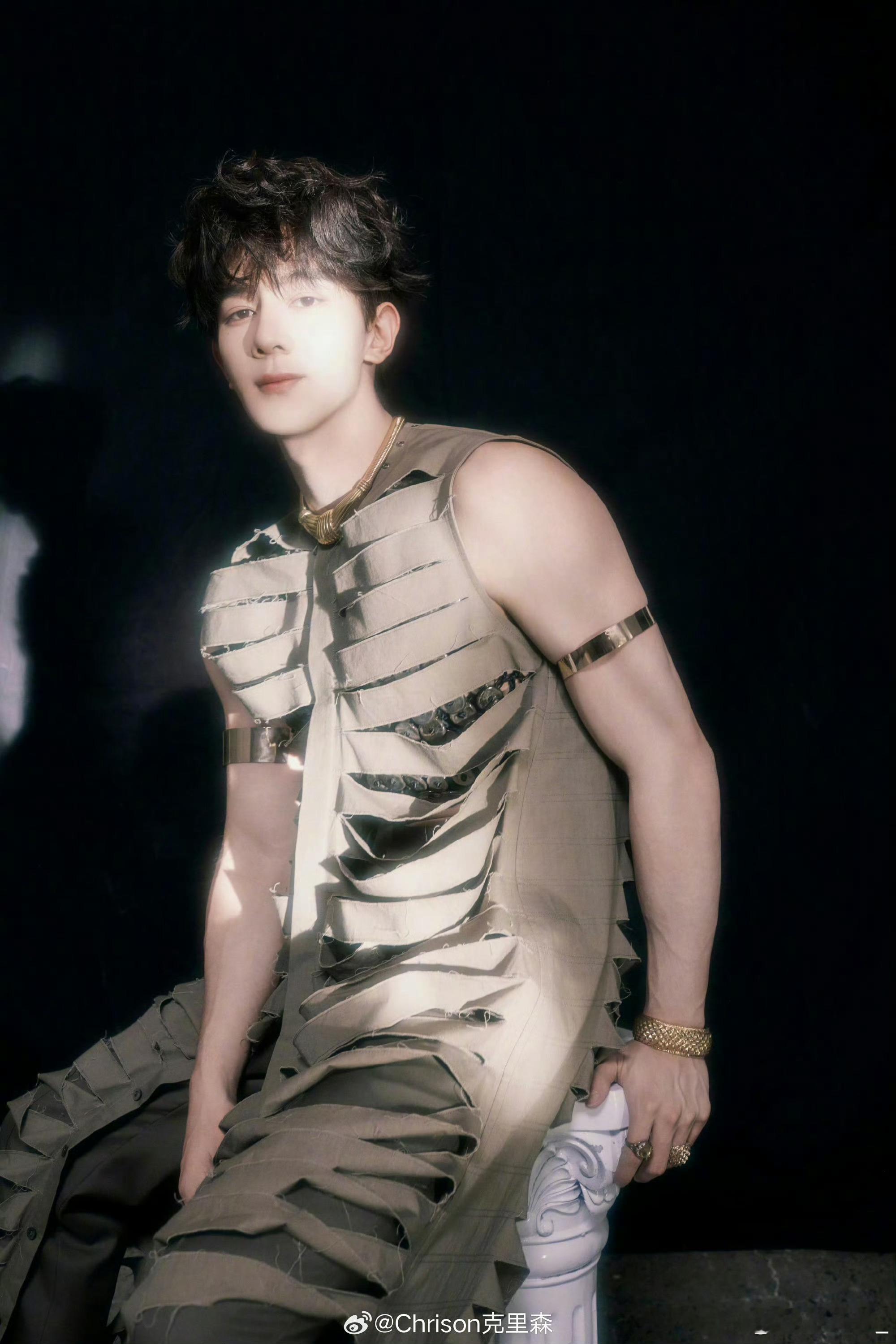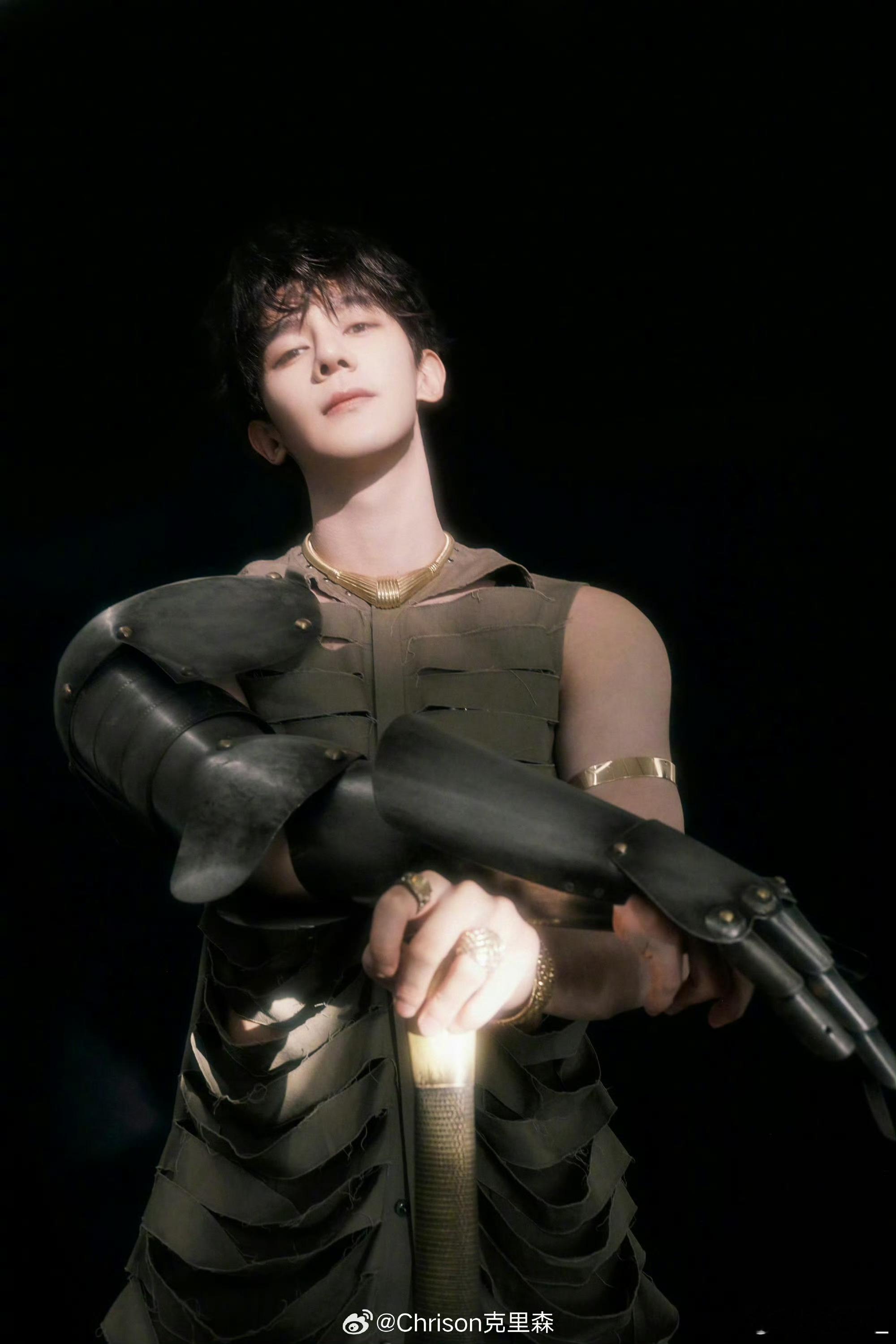 #夏之光铠甲勇士光影大片#夏之光在费加罗盛典上以铠甲造型亮相红毯,卷毛发型与废土风格的铠甲相得益彰,展现出一种酷帅且带有野性美的独特魅力。
