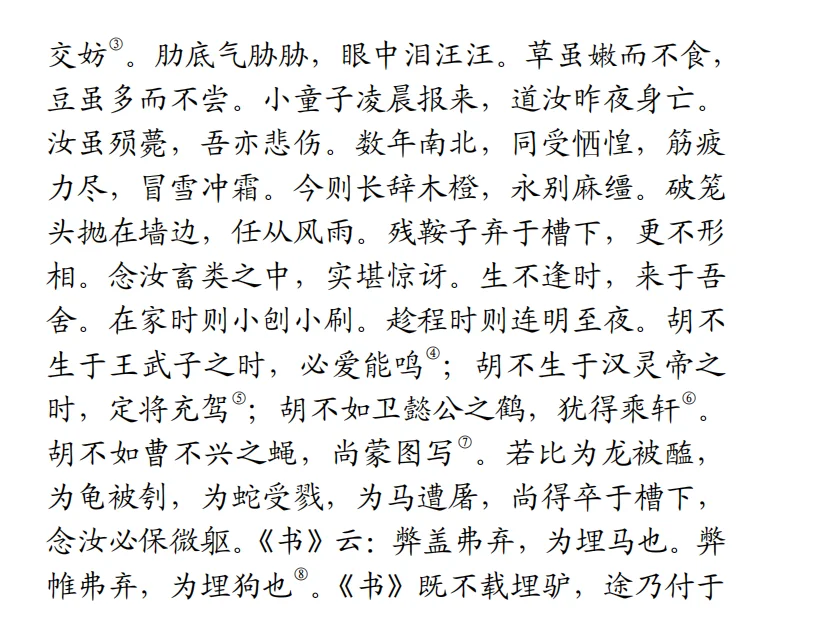 然后作者开始表达对驴子的思念之情,为驴子的一生鸣不平,说驴子“生不逢时,来于吾舍”