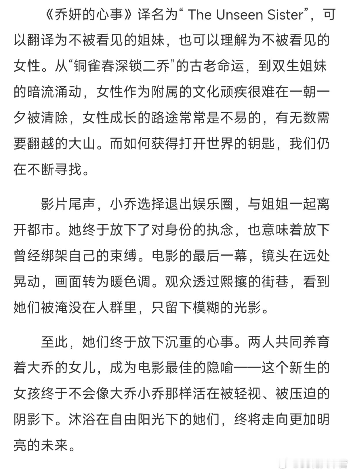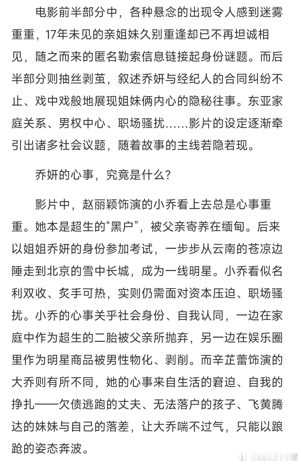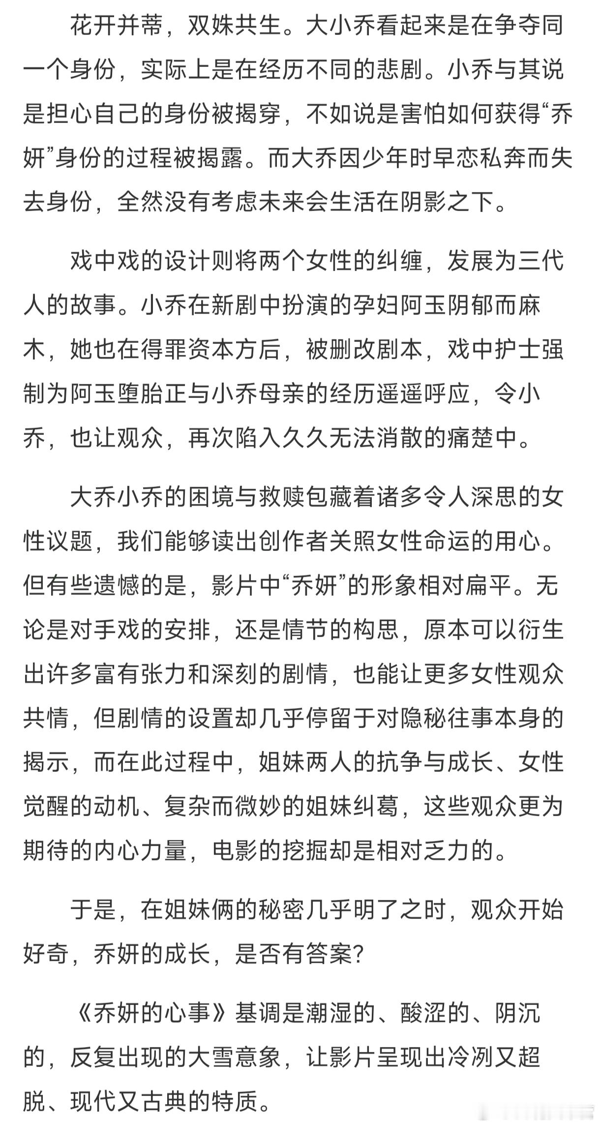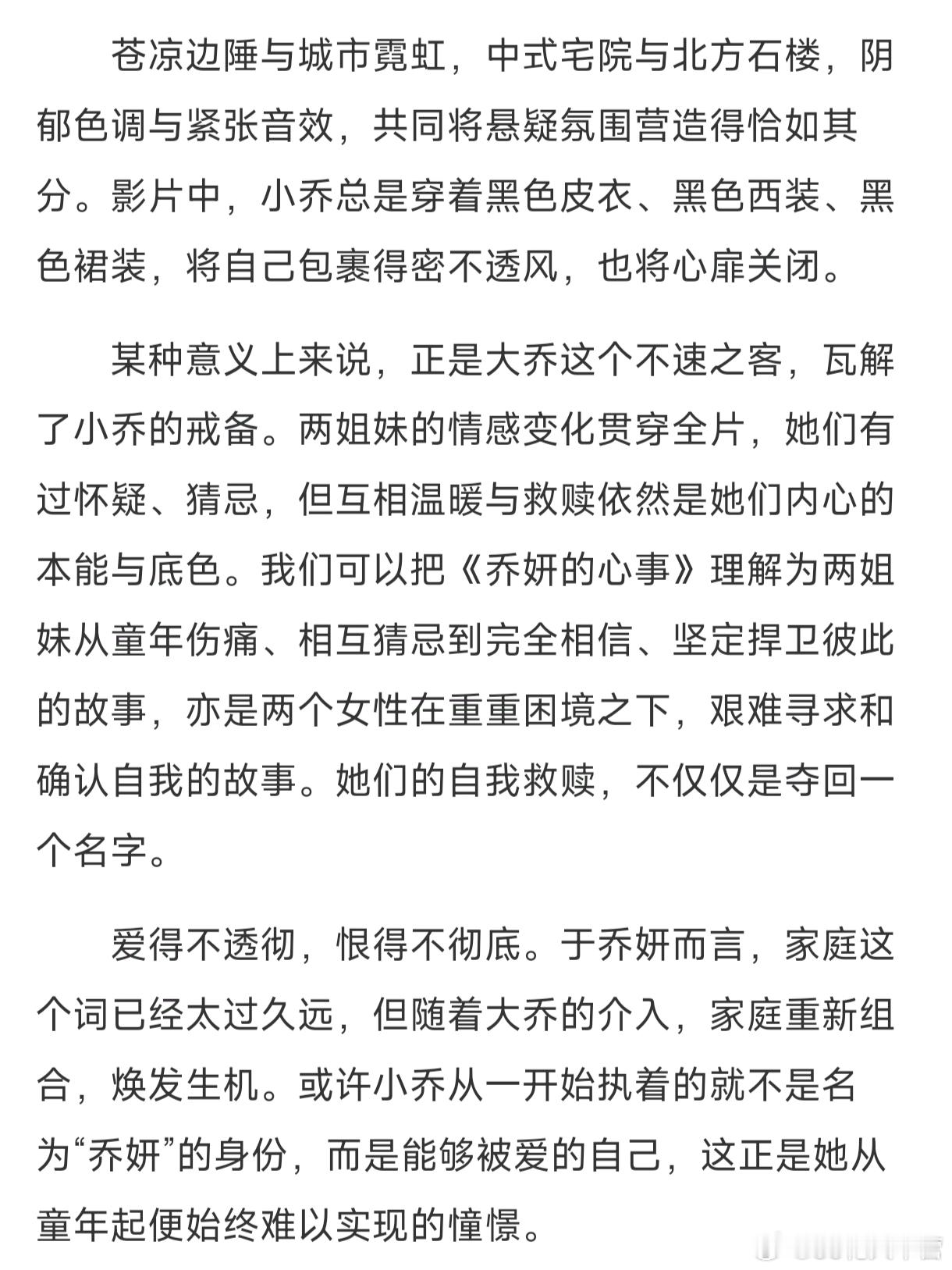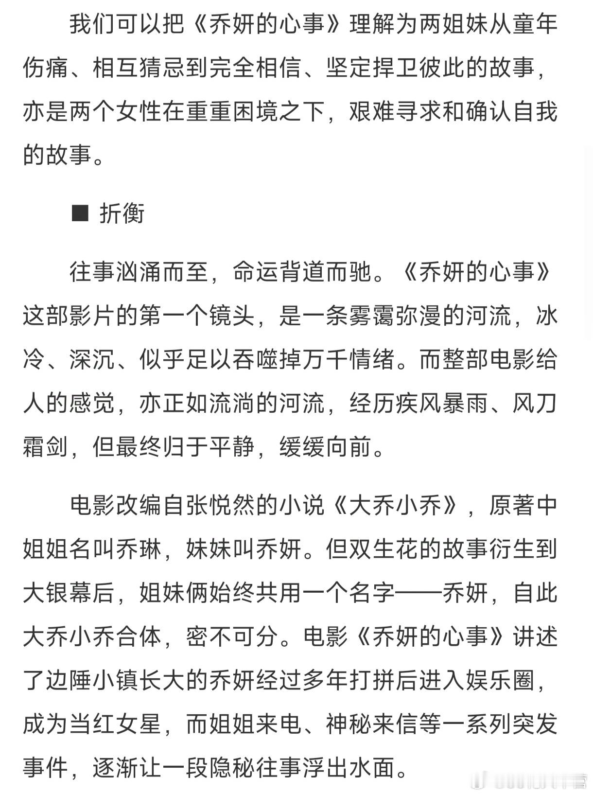 《中国妇女报》影评———— 《乔妍的心事》:两生花的交错命运与彼此救赎!#乔妍的