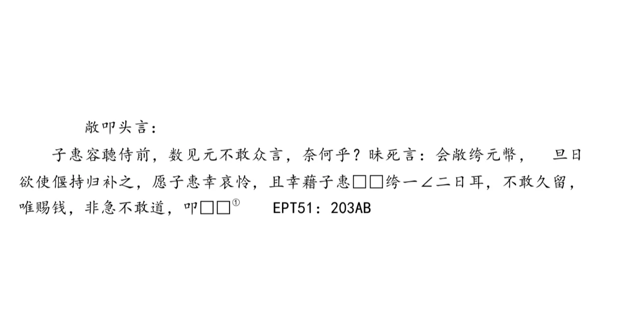 敞多次见到子惠,但不敢多说。实在没有办法,冒昧的对您说:我的裤子破旧了,明天想让偃拿回去修补。希望子惠哀怜,借给裤子一两天,不敢借太久。若不是紧急,不敢和您说。
