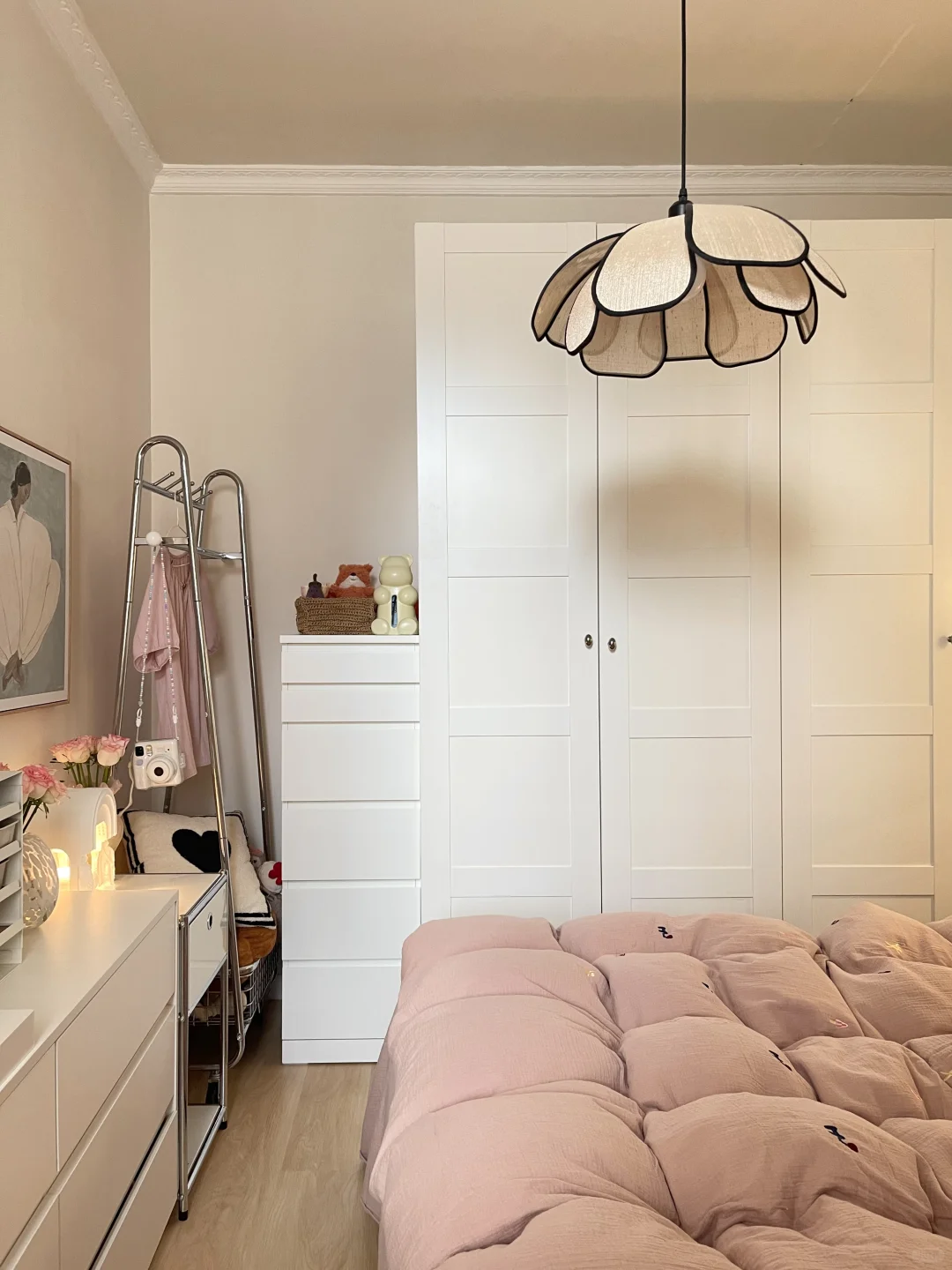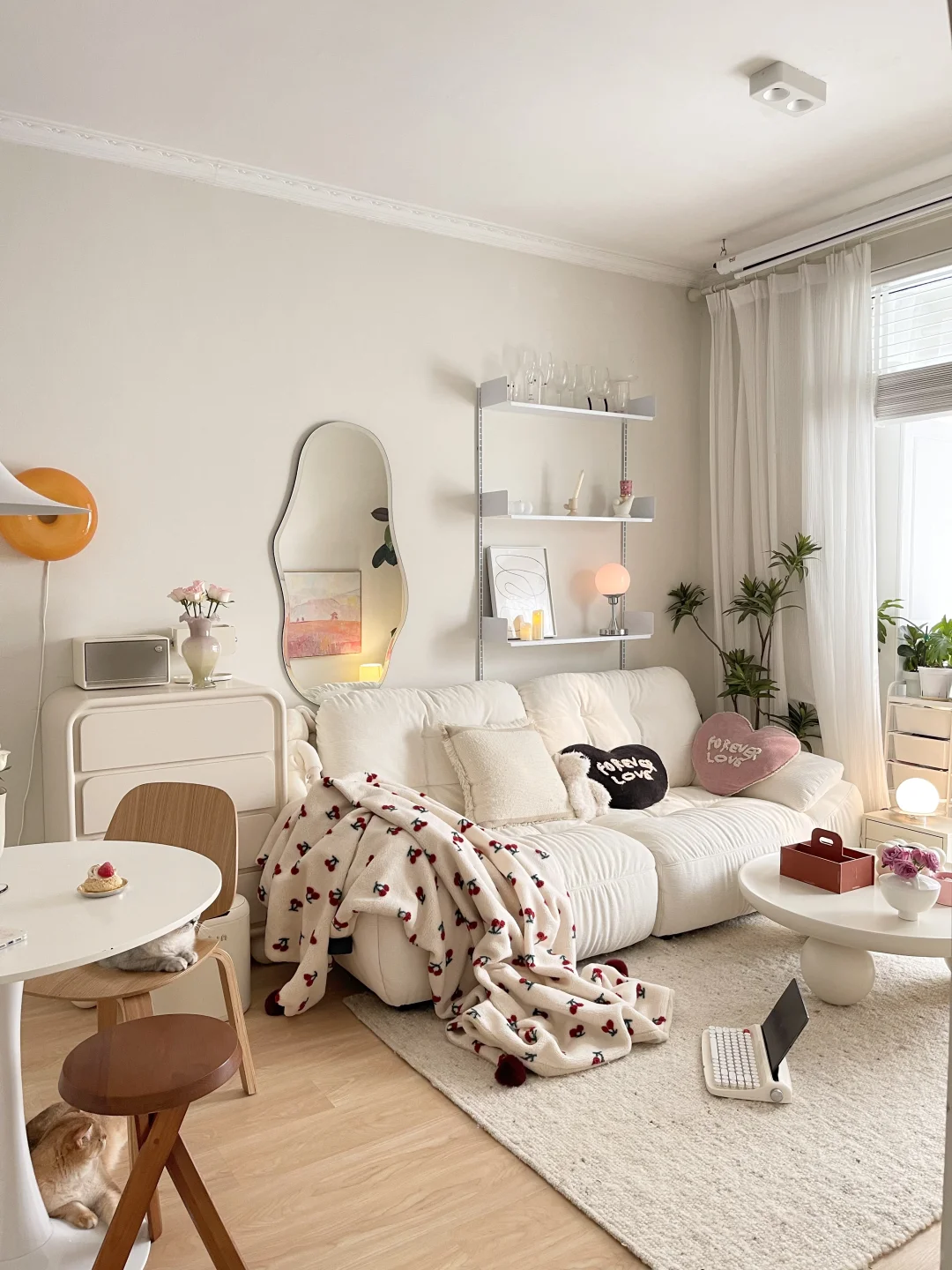 我家是40平一室一厅 客餐厅一体小户型 没有设计师,自己跑上跑下装修 没有家人干涉,我选择了很多白色家具 轻硬装重软装,通铺木地板刷乳胶漆没有吊顶 轻轻松松装出了温馨的小家 拆掉阳台门后 仅15平的客厅显得更大,采光也好 餐厅放了圆餐桌,挂一盏喇叭吊灯 加两个餐边柜,餐厅简单又温馨 收纳空间也是足够的 卧室8平,麻雀虽小五脏俱全 现在的独居生活真的很爽 有房有车 有点小钱 有只小猫 有些自由❤️ 每天回来看到干净整洁的家,好治愈呀~