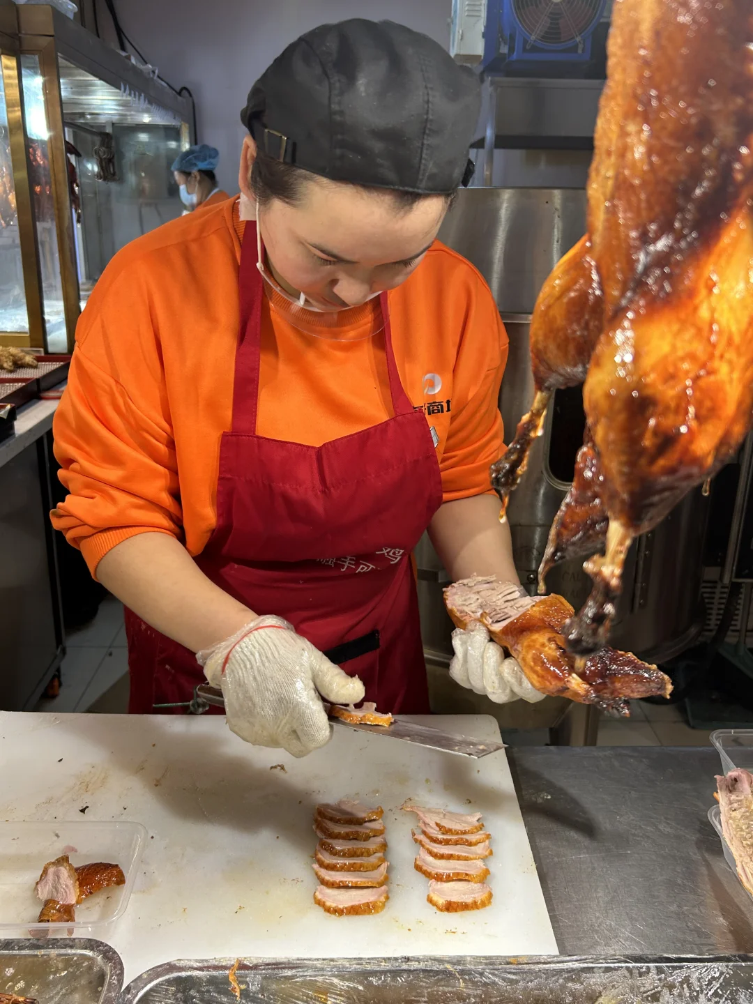 烤鸭配卷饼泰香啦~鸭腿想单独啃来着,这个小姐姐手快片好了,黄瓜🥒蘸酱也绝了[笑哭R][两颗心R]