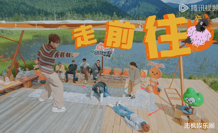于是,在这一趴观众可以看到白敬亭躺在地上,艾伦在地上到处爬。