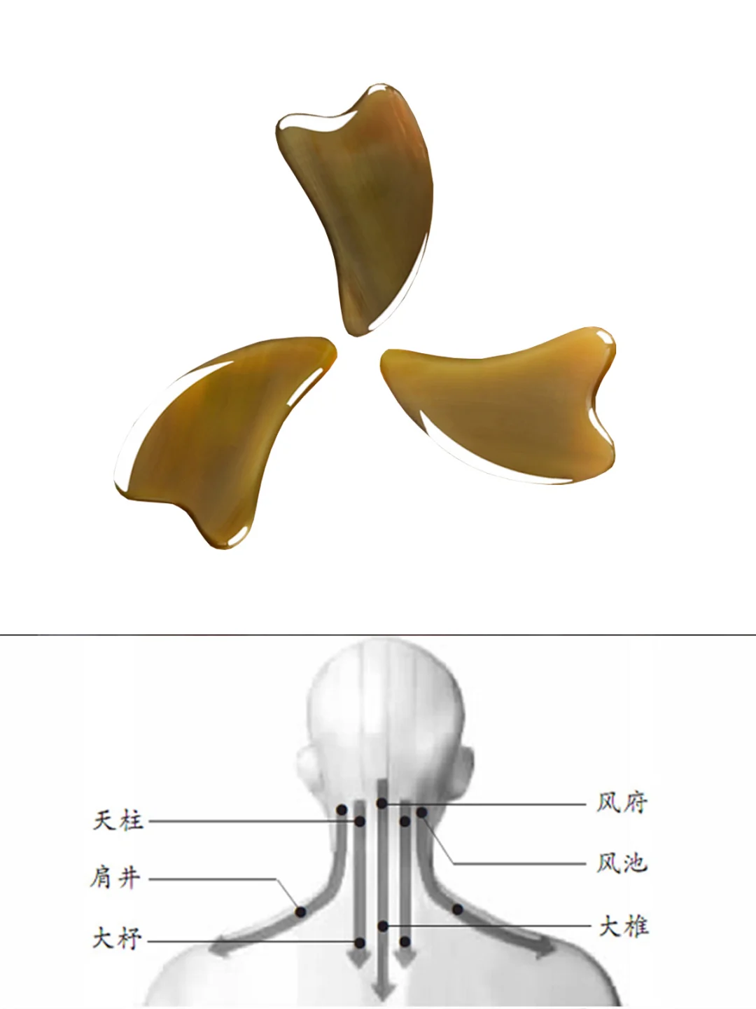 2、外弧边,主要用于面部😸,刮美人筋,刮地筋🦶,背部,四肢;