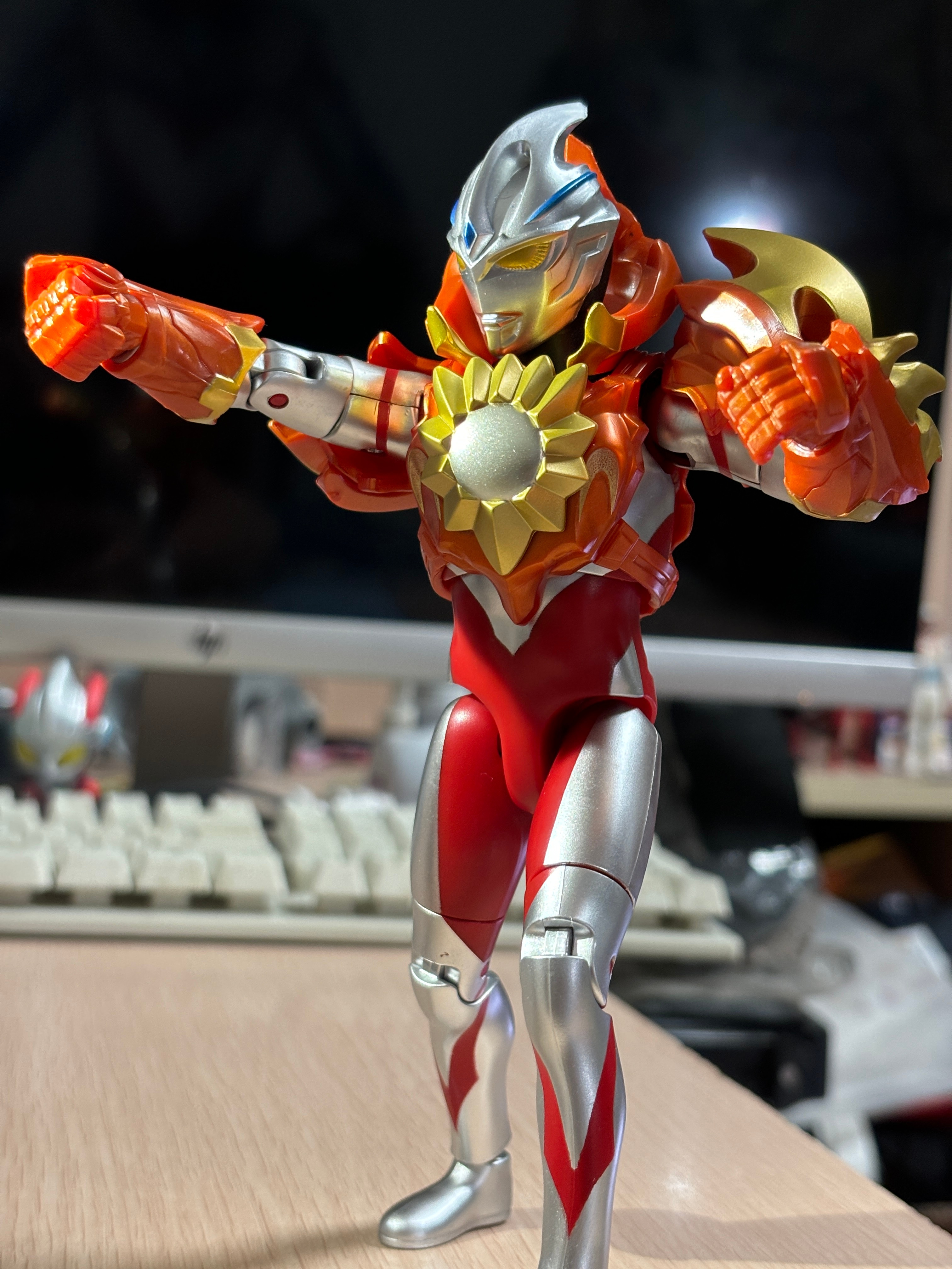 【万代英雄天地】奥特发声超可动 亚刻奥特曼太阳装甲亚刻人偶内置3种音效。装甲可穿