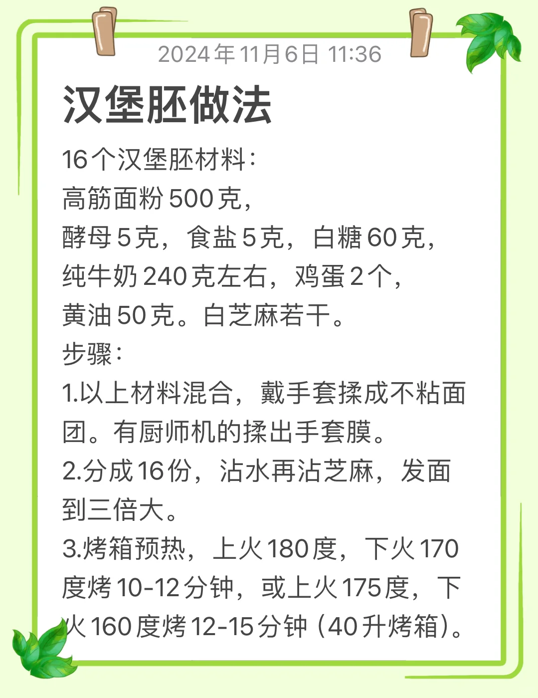 16个汉堡胚材料: