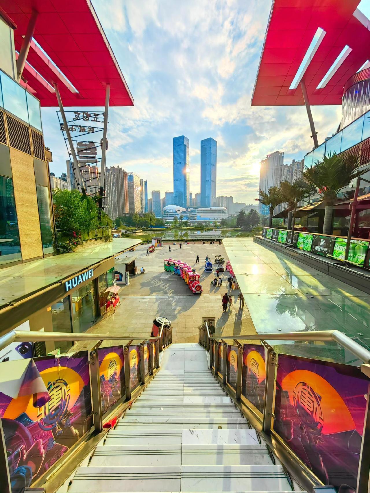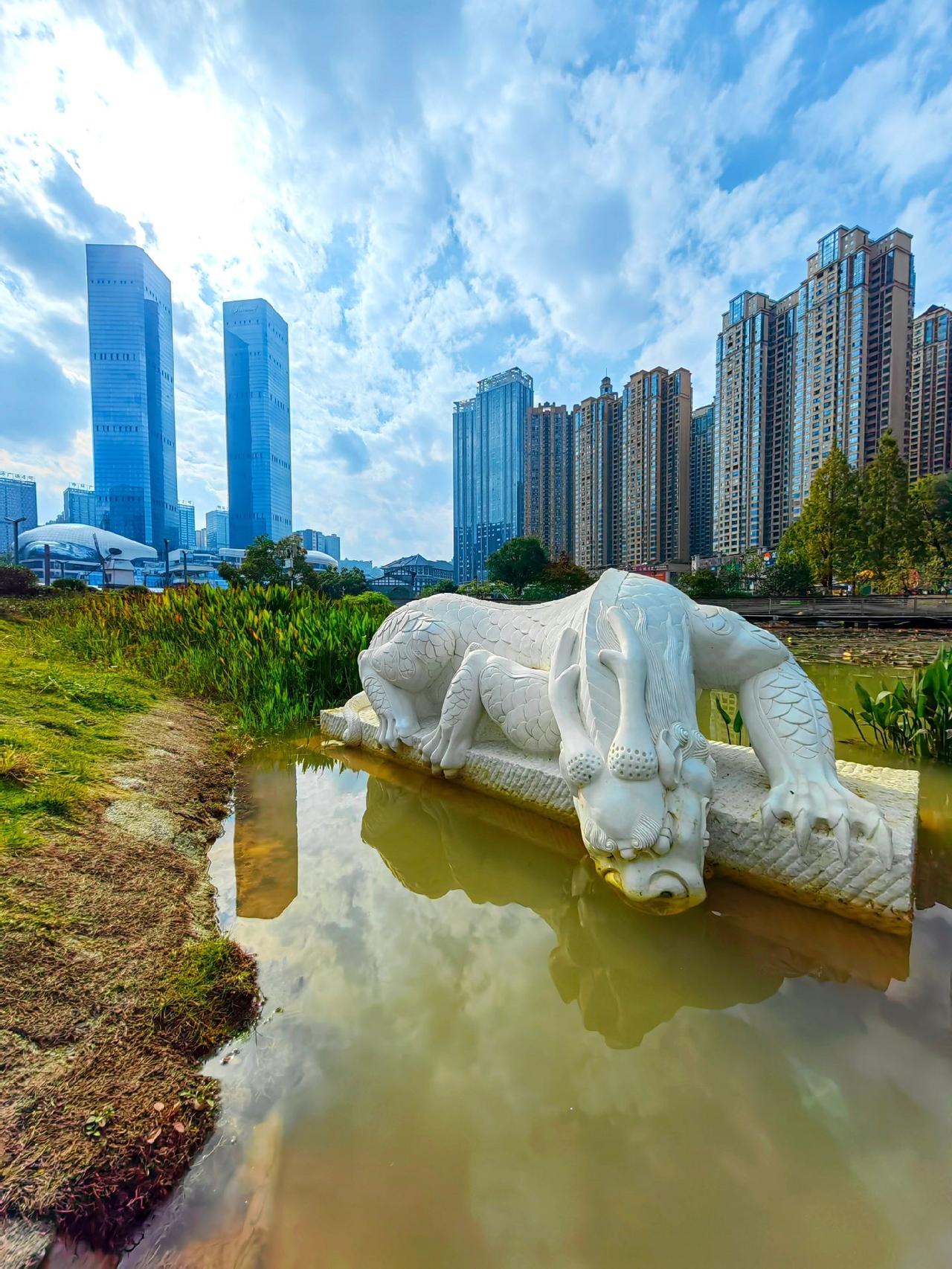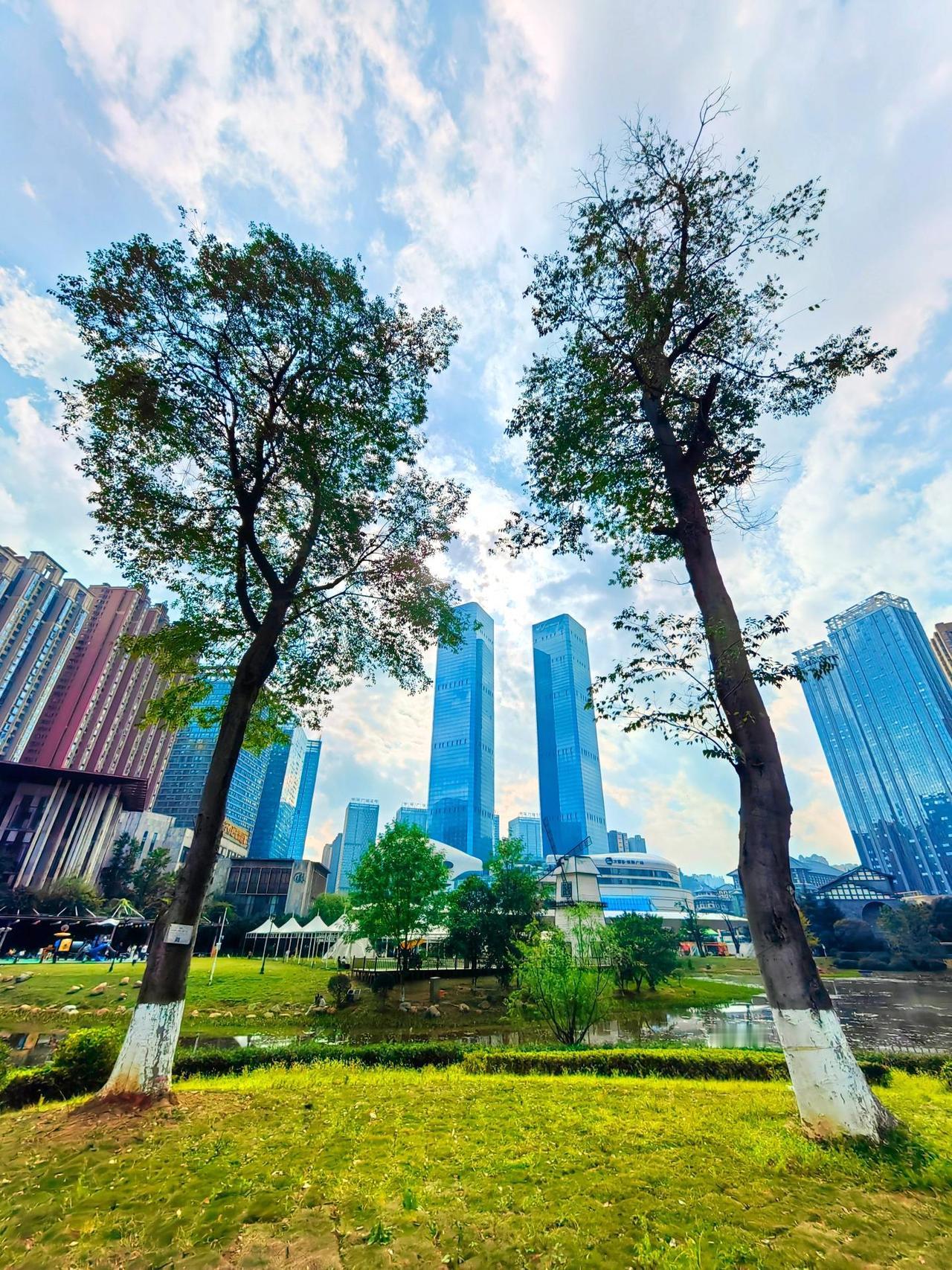 双塔嵯峨耸碧空, 烂银堆里紫金峰。 一城仙岛筑城里, 双塔画图都市间。
