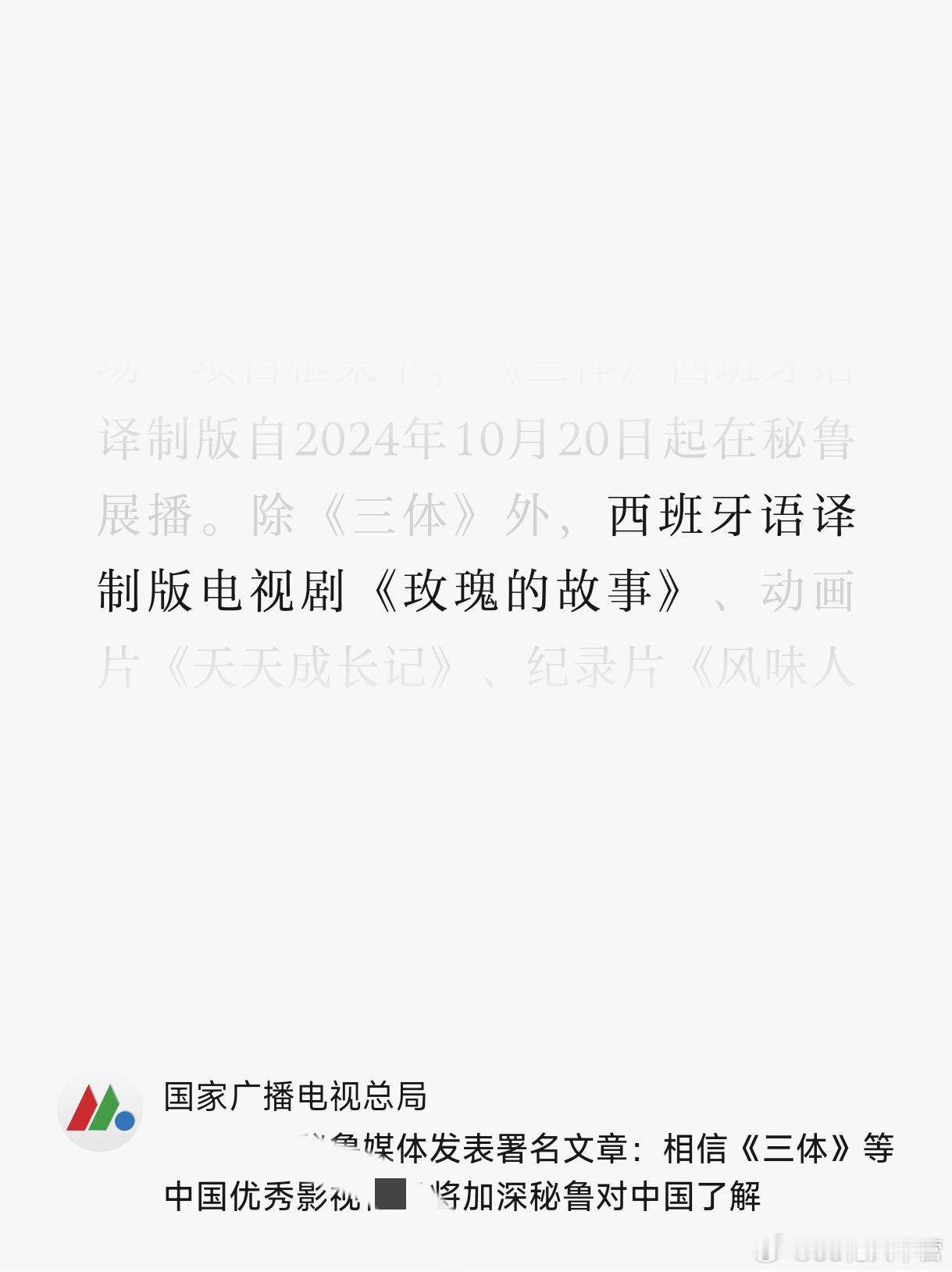 GJ广电总局官网消息——在“电视中国剧场”项目框架下,西班牙语译制版《玫瑰的故事》,将登陆秘鲁威莱克斯电视台!
