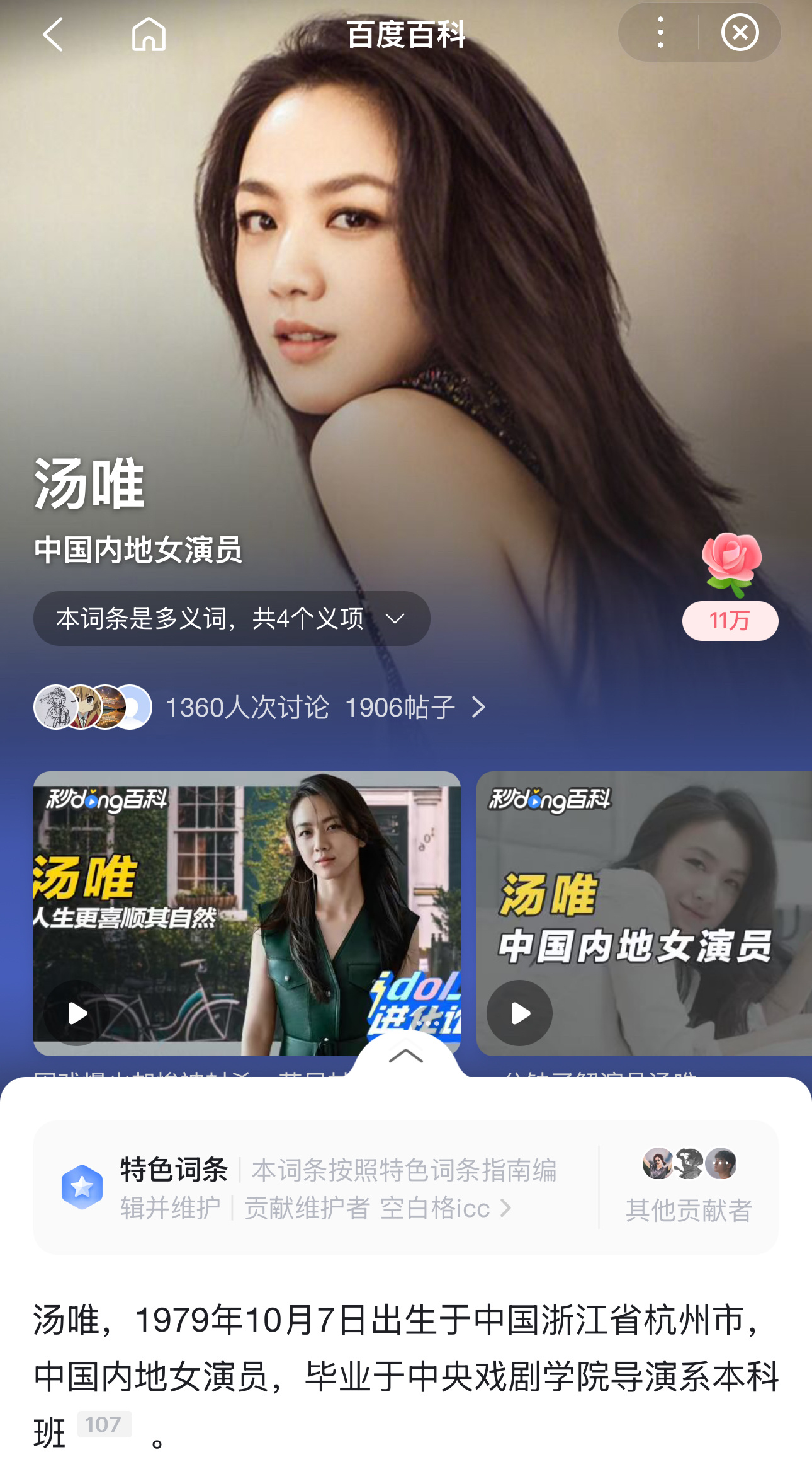 汤唯发ins指出,自己的百度百科上出生地点有误,求网友帮忙修改。现在已有热心网友帮她修改正确。