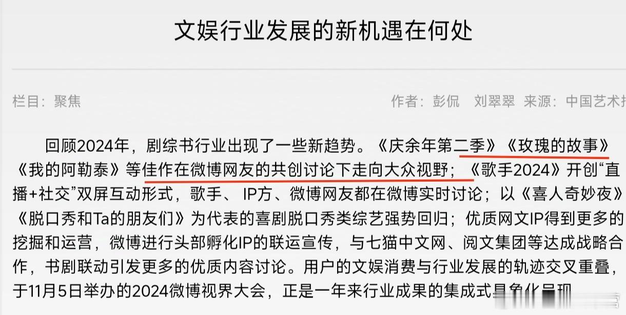 《中国艺术报》——文娱行业发展的新机遇在何处开篇第一句,回顾2024年,《玫瑰的