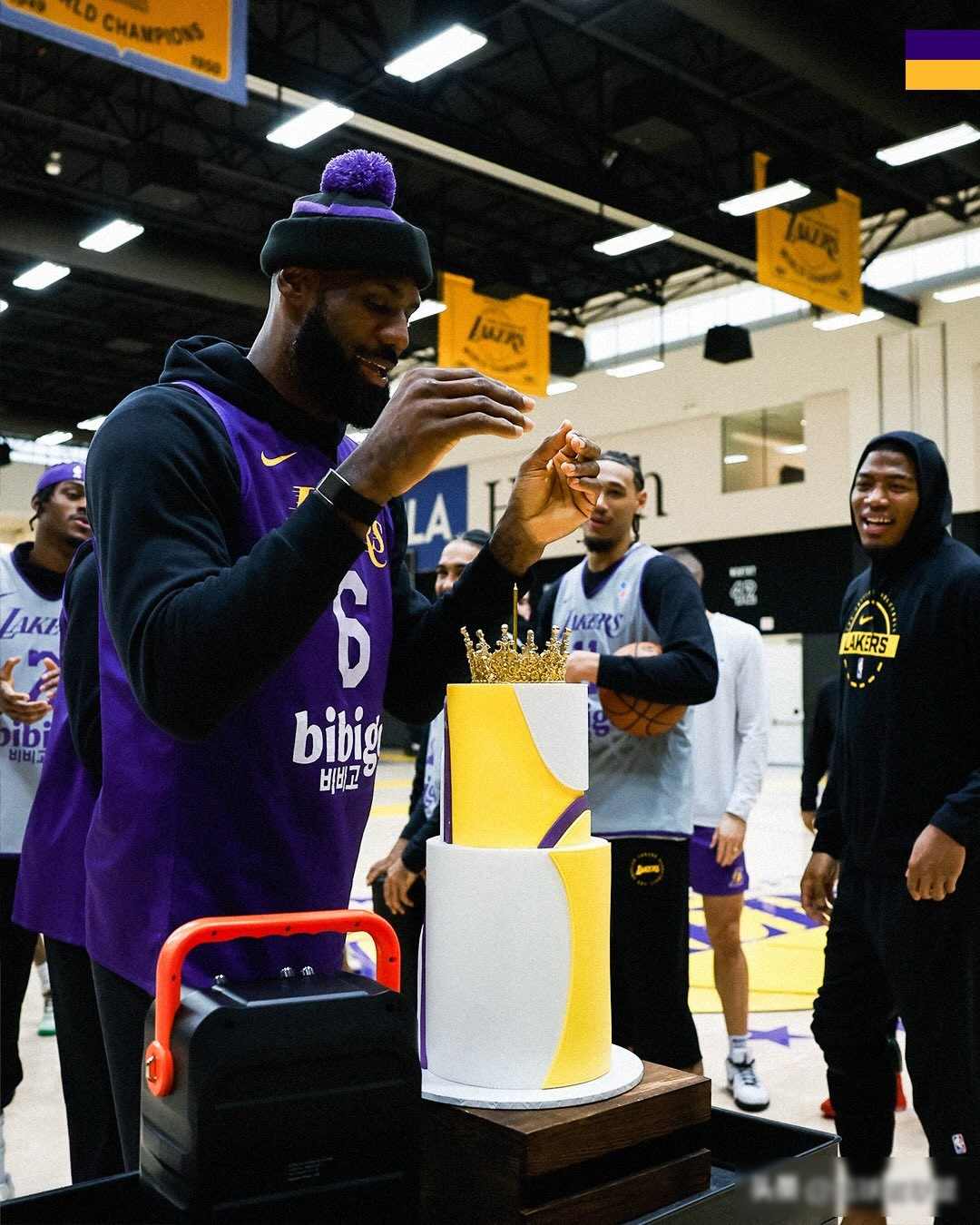 今天是12月31日,湖人队的詹姆斯过了41岁生日,球队给他准备了个简单的庆祝,蛋糕有两层,上面印着他的标志,还特意叫来新秀阿杜·蒂耶罗唱生日歌,艾顿站在一旁当指挥,视频里詹姆斯被队友围着,大家一边鼓掌一边笑,气氛挺热闹。