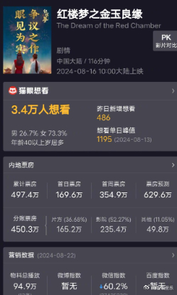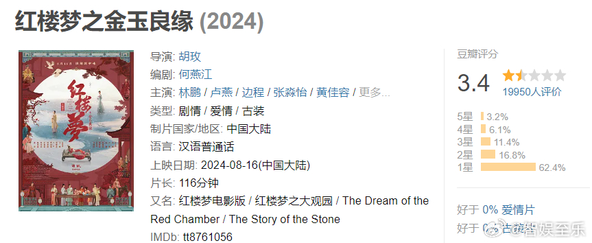 比如2024年,我们看到了一些明星创造了几亿几十亿的票房,也看到了惨败的电影,它就是《新红楼梦之金玉良缘》。