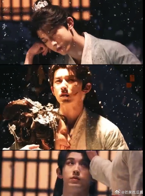 下雪是郭俊辰宿命感的开关 雪花开启了郭俊辰的宿命之门,在《引灯决》的天地中,他似孤独的行者。雪纷纷而舞,他的气质清冷如霜,冷风吹拂间,破碎感油然而生。那抬头仰望的姿态,满是落寞无奈,又似有炽热深情在心底翻涌。脸上的伤痕,是宿命的画笔留下的痕迹,他的每一步,都踩在宿命的琴弦上,弹奏出虐心的旋律,令人沉醉不知归路。