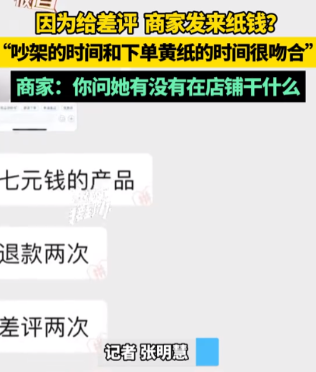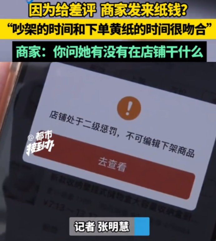 原来,陈女士之前不仅是评论了一个差评,而是退款了两次又连着给了两次差评,甚至还将店铺给投诉了,直接导致人家商家的店铺受到了平台的二级处罚,所以心里也十分委屈的商家气不过便给陈女士在网上下单了“纸钱”。