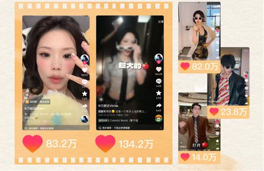 知名Rapper万妮达为红果量身定制的主题曲及其引发的#果子舞挑战#,在抖音等平台掀起病毒式传播,其本人视频多条点赞破百万,让“红果”拥有了酷炫的旋律和动感的舞步标识,深度绑定年轻潮流文化。